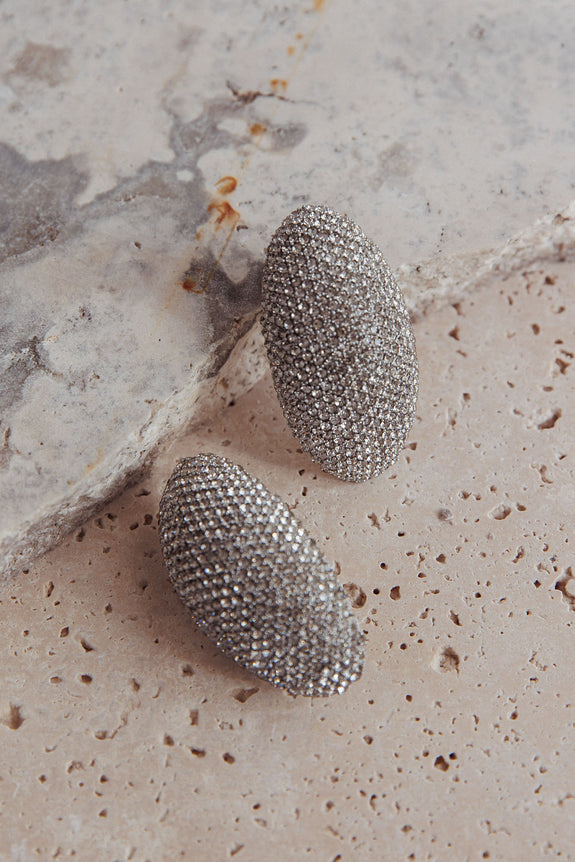 Candice Oval Cabochon Earrings Silver Diamante