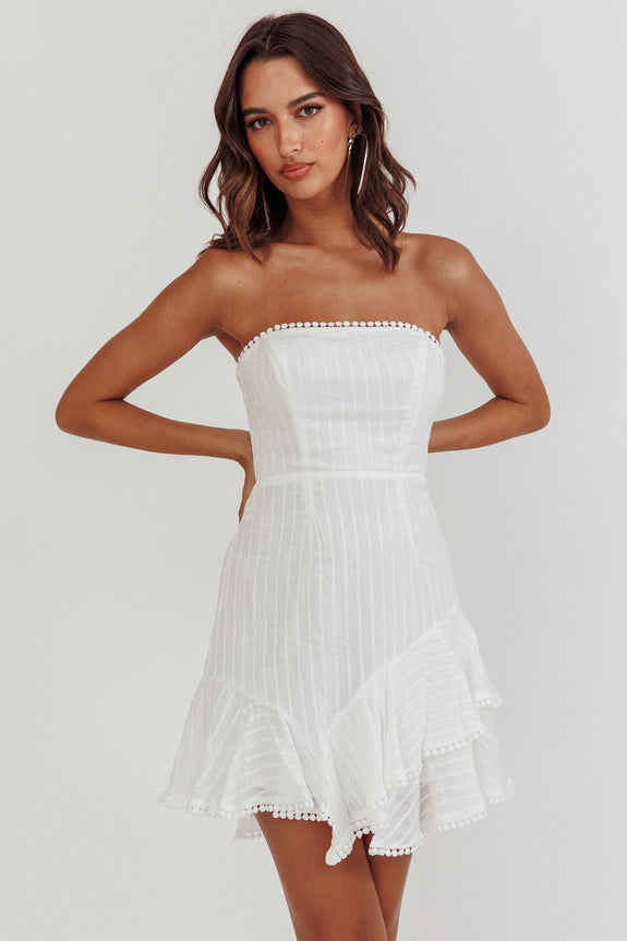 Make an entrance in our super sweet Candy dress. Featuring a strapless design with boning in the bodice, gorgeous lace trim and tie-up back. It'll make the perfect party dress teamed with statement earrings and strappy heels.