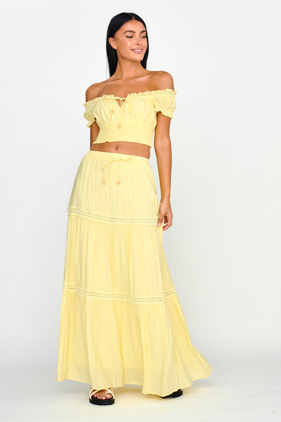 Canyon Cove Crochet Trim Maxi Skirt Yellow