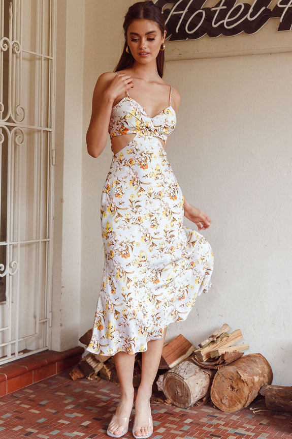 Your closet called, it needs this dress. Our Cariba dress features a cut-out waist and a tied back. Perfect for a wedding or birthday celebration teamed with nude mules and a clutch.