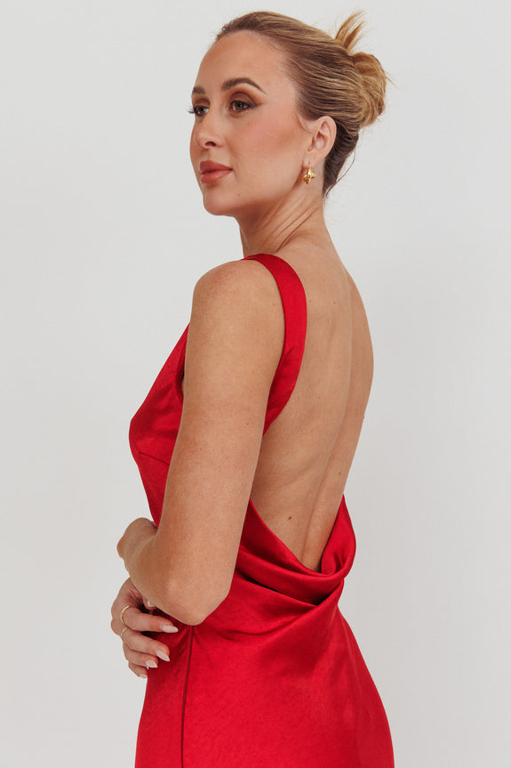 Be captivating in our Carmine maxi dress! Sure to turn heads with its backless design and flattering boat neckline, this dress is designed to effortlessly accentuate your silhouette! Perfect for evening glamour, this dress is a must-have addition to your party wardrobe.