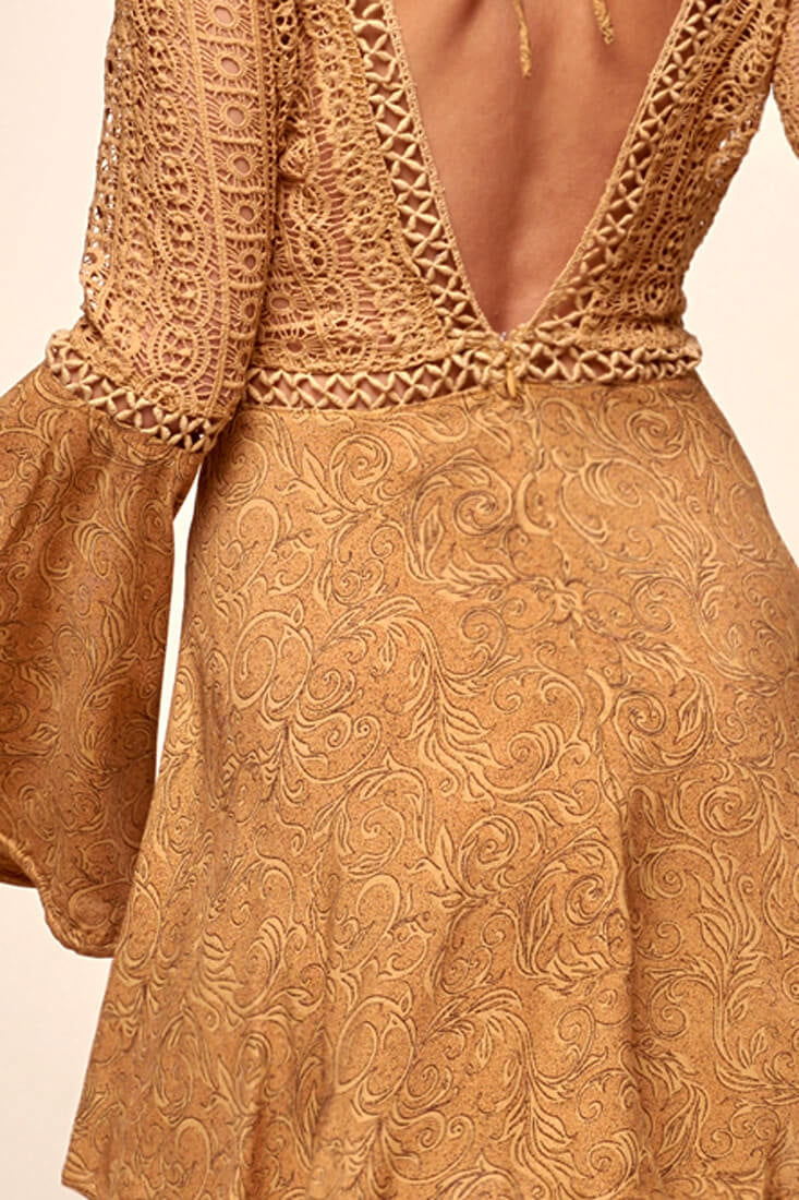 The knitted top on this dress balances perfectly with the printed linen that adorns the bottom. Pretty tan color reflects the hottest trends. Wears perfectly with nude heels or even strappy flat sandals.