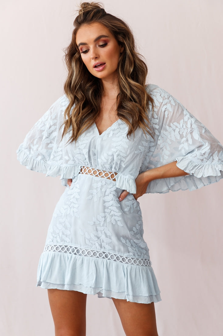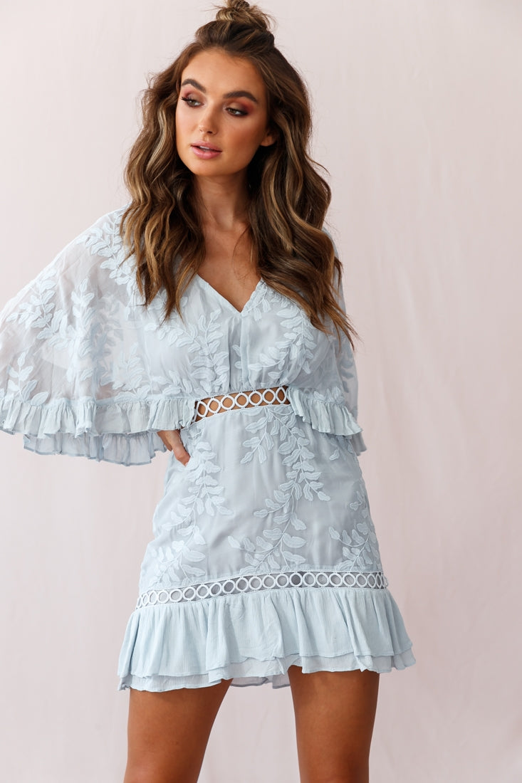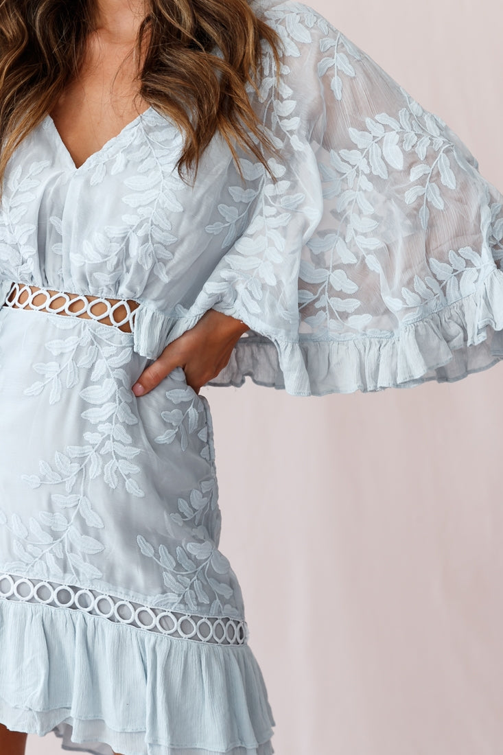 One of our most popular styles, the Caspar dress is elegant and versatile, easily going from work to sunset cocktails with the gals after work. We love its batwing style sleeves, with pretty ruffle trim and eyelet embroidery around the waist that's also repeated around the skirt's hem. Pair it with nude heels and fine gold jewelry for a feminine-chic look we are loving.