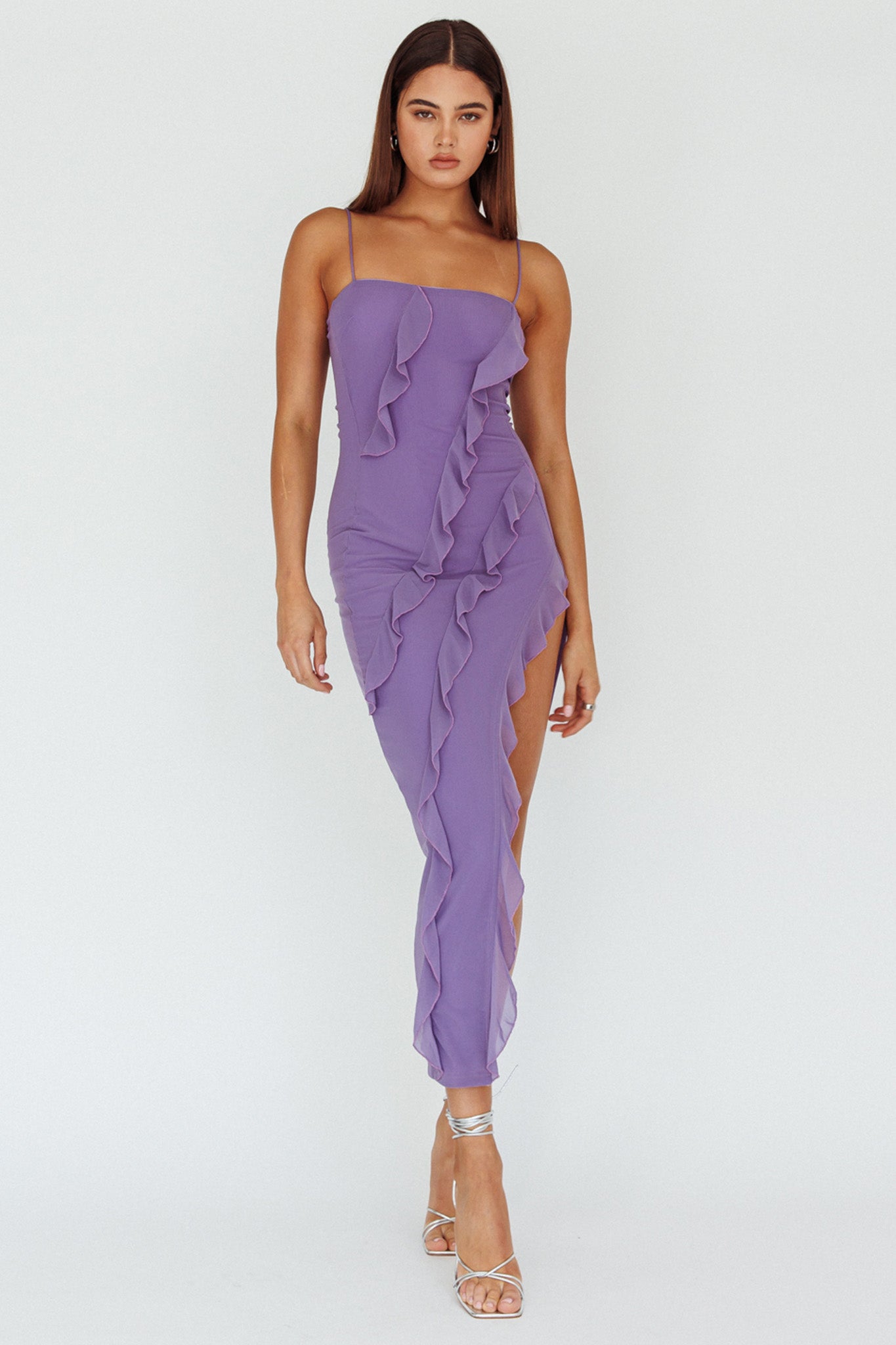 Make an entrance in our gorgeous Catriona midi dress. We are in love with its high thigh split in the side and on-trend ruffle detail. Perfect for a fun girls' night out teamed with strappy heels and a clutch.