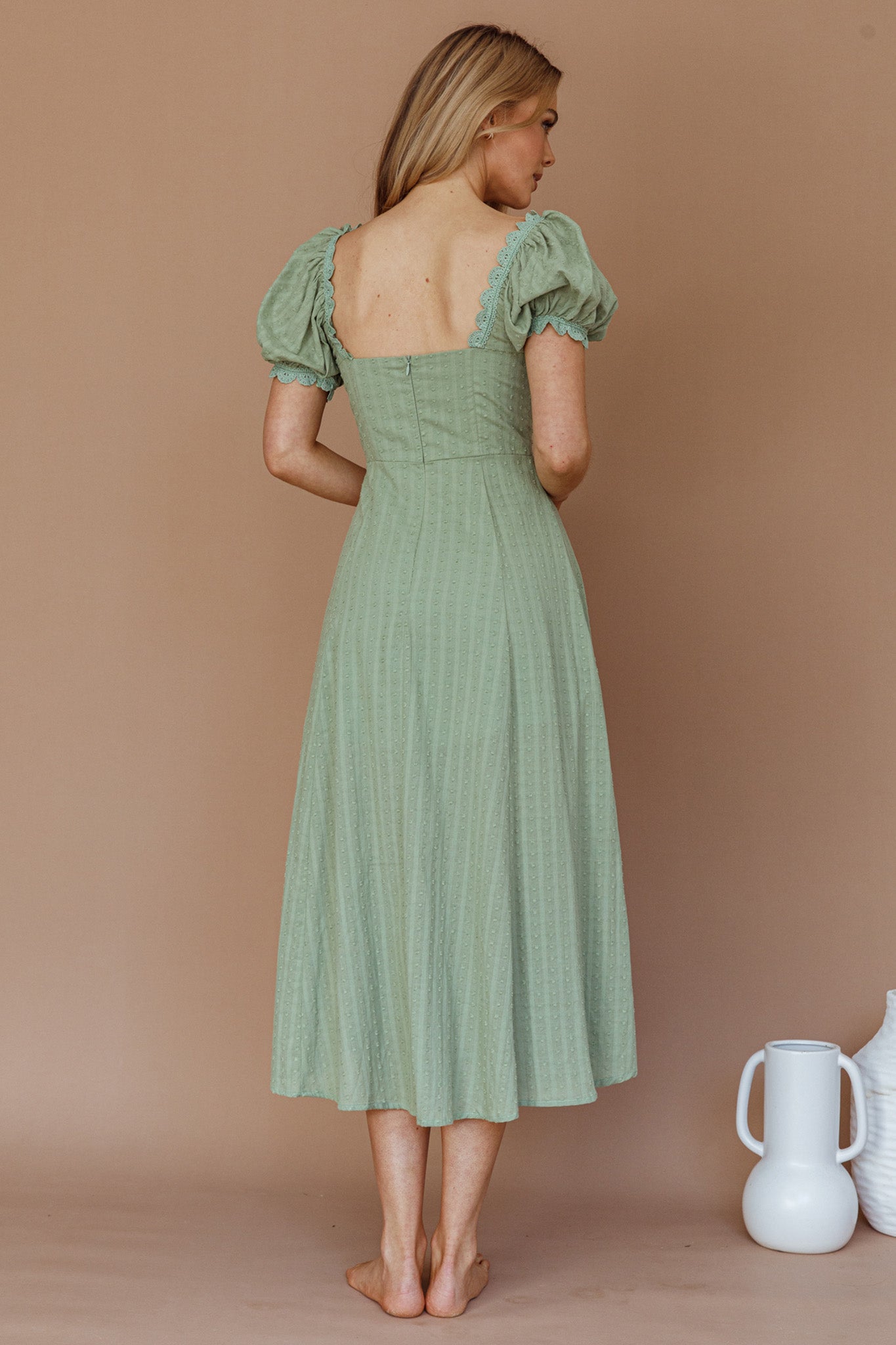 Chablis Gathered Bust Puff Sleeve Midi Dress Sage