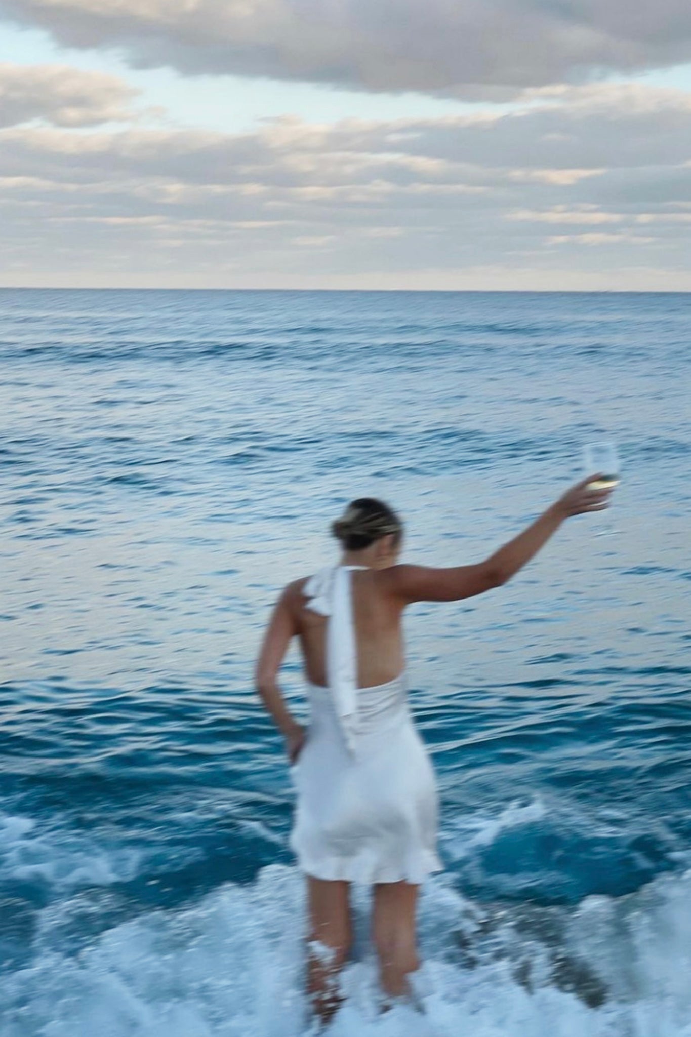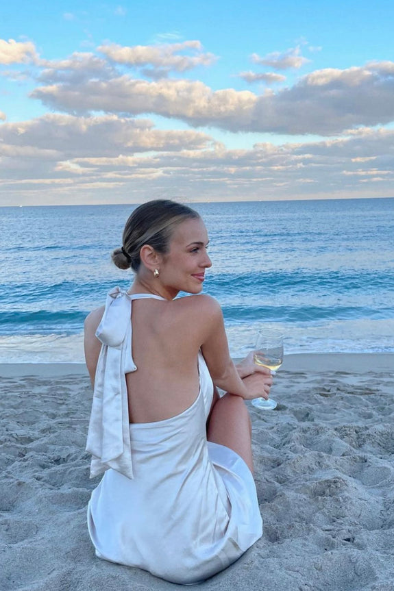 Steal the spotlight in our gorgeous Champagne Showers dress. We are loving the on-trenc cowl neckline and flattering halterneck style. Perfect for a bridal shower or Summer nights at your fave rooftop bar. Team it with nude heels and a small purse for an ultra chic look.