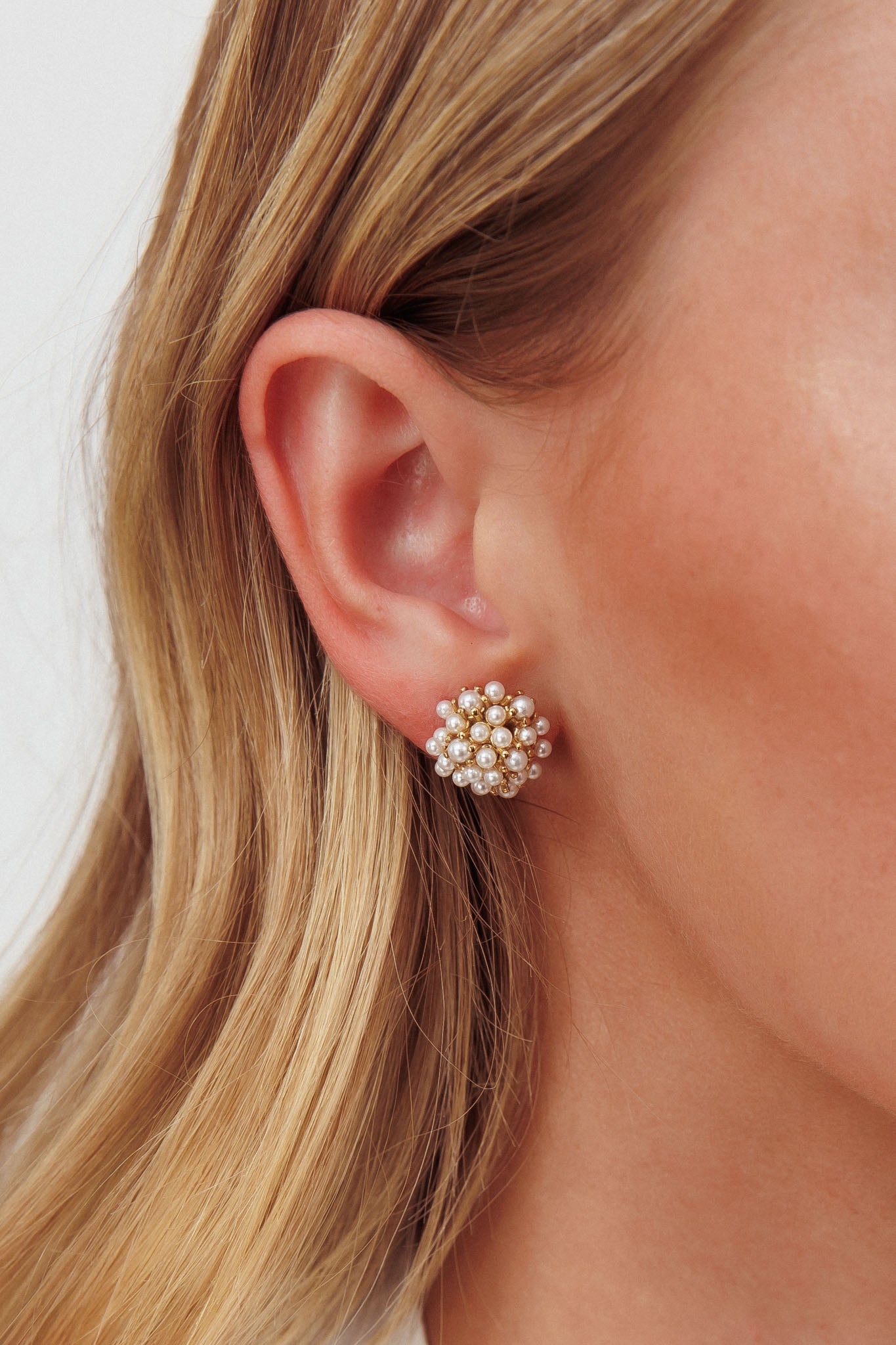 Elevate your look with our gorgeous Champagne Toast earrings. They feature a gorgeous, multi-pearl design and are perfect for a date night or glam event. Team them with our Nadia dress for a look that will stop traffic.