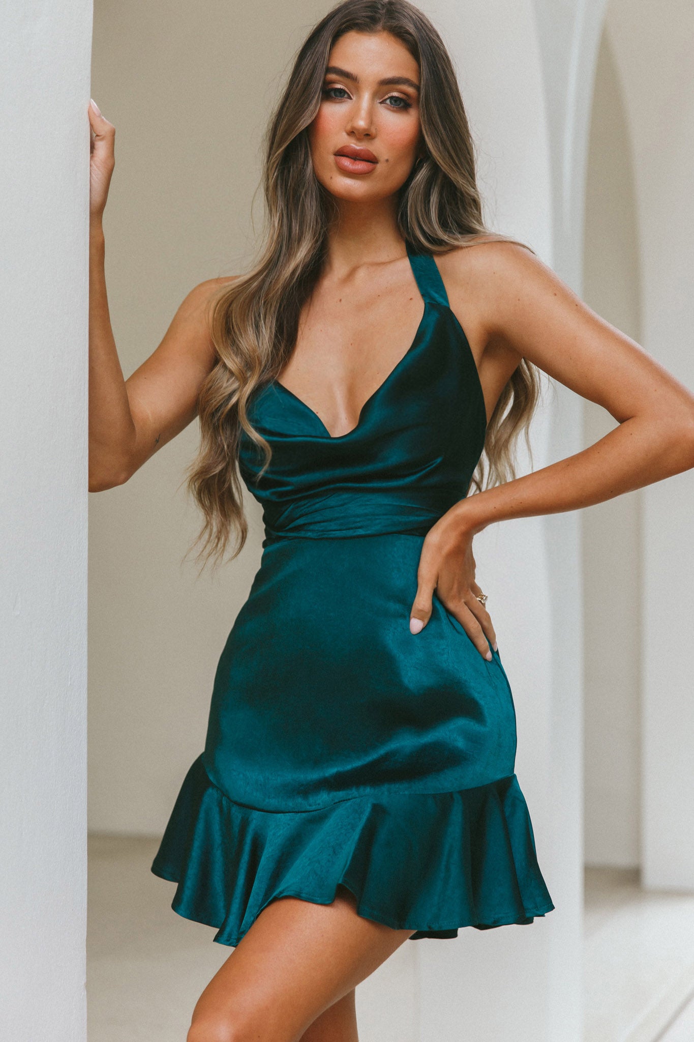 You'll make every best-dressed list in our elegant Champs Elysees mini dress. Featuring a sexy halterneck with bow tie closure and ruffle hem. Wear it on a girls' night out, sipping cocktails and flirting with Mr. Tall, Dark & Handsome. Team it with strappy heels to complete the look.