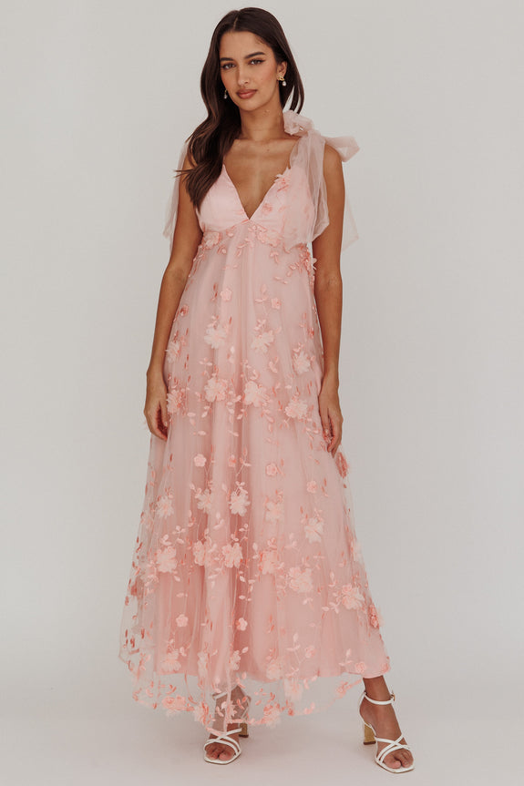 You will be flooded with compliments in our gorgeous Chantilly dress! Obsessed is an understatement when it comes those bow, tied shoulders and stunning floral embellishment throughout. Perfect for wedding celebrations or a birthday soiree! Team it with white heels and a clutch for an unforgettable look!