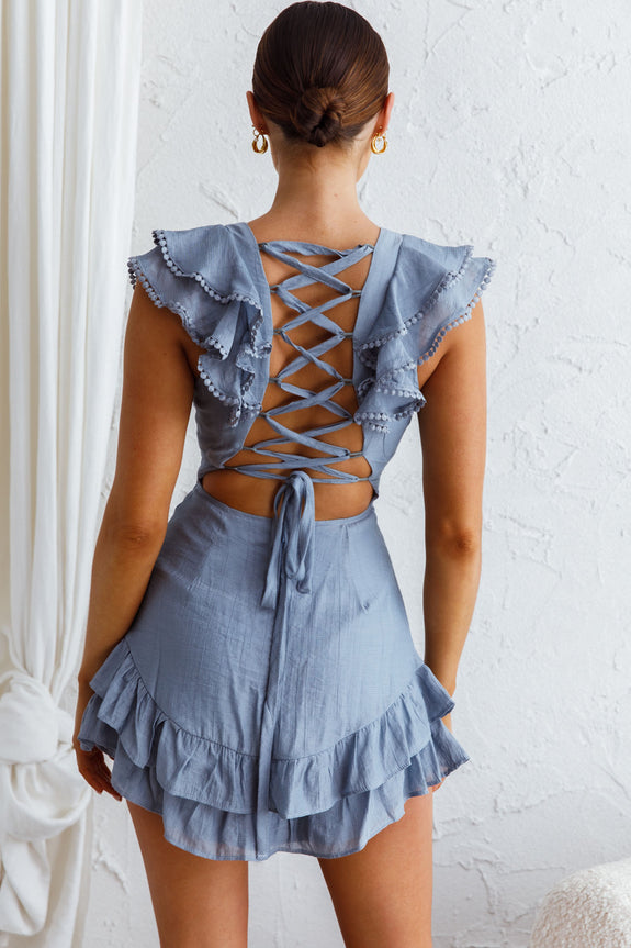 Charade Ruffle Shoulder Corset Back Dress Midnight Blue