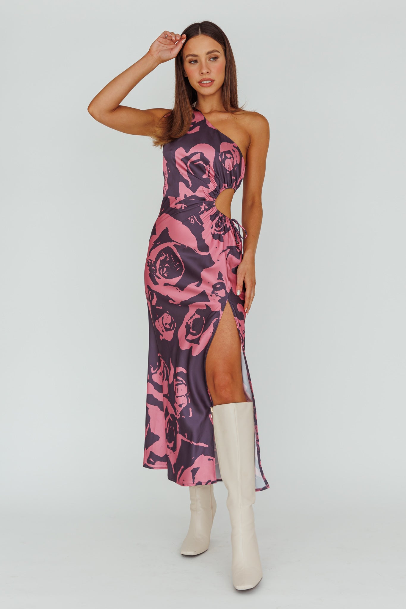 Charisma One-Shoulder Cut-Out Maxi Dress Floral Purple