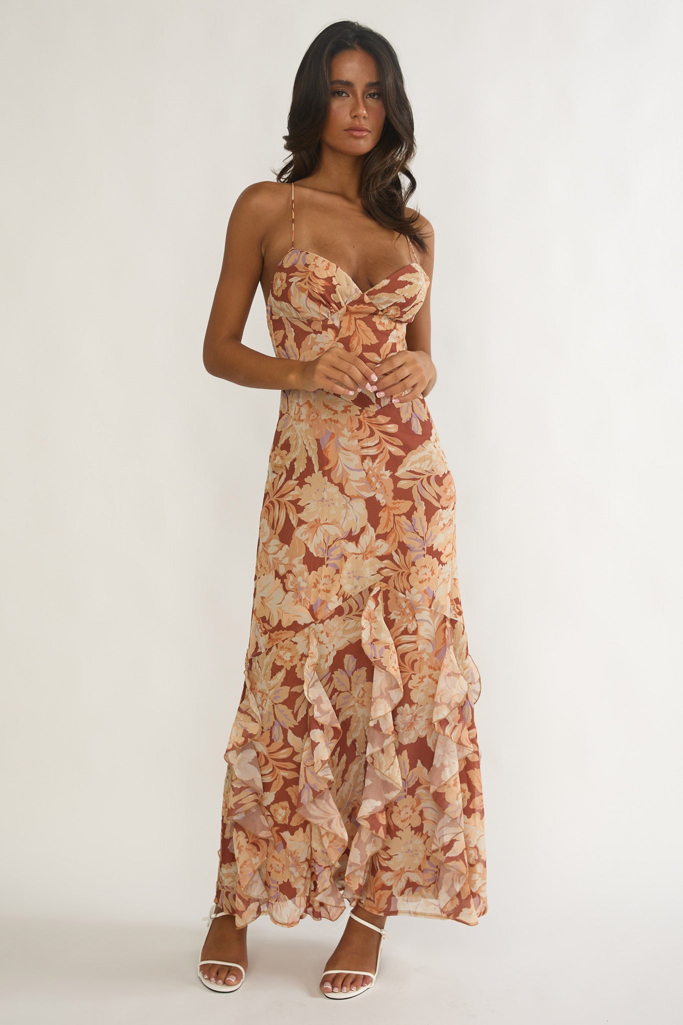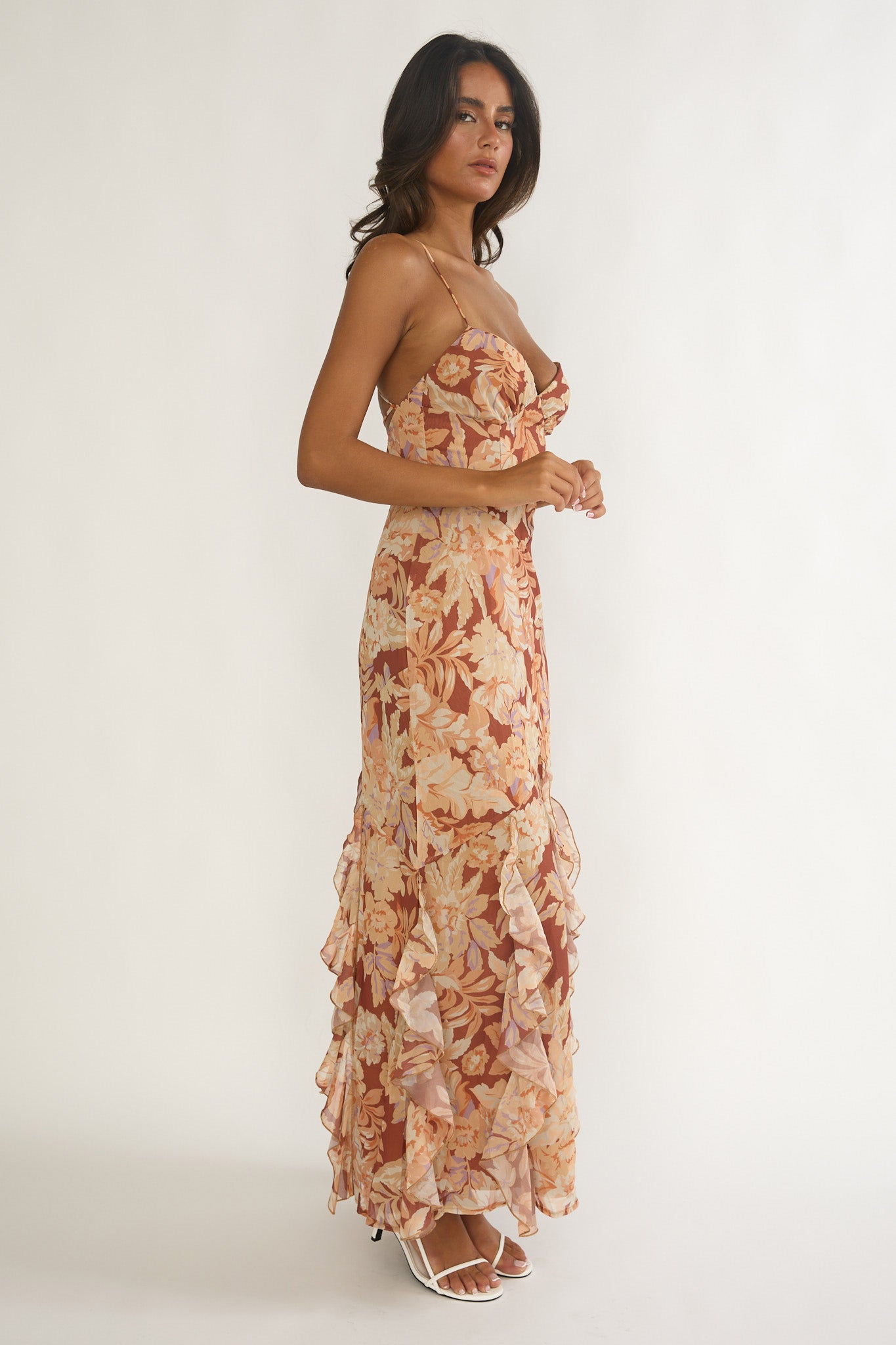 Make an entrance in our stunning Charlisa maxi dress. We are obsessed with its strappy back and ruffle trim detail. It's just what you need for a birthday brunch with your girlies, team it with nude heels and a saddle bag for a head-turning look.