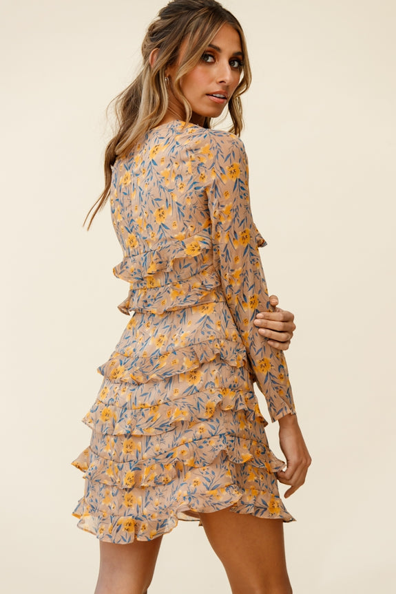 Steal the show in our pretty Charmaine dress. Featuring long sleeves, tiered frill detailing and gorgeous floral print fabric. Perfect for a casual first date teamed with boots and a felt hat.