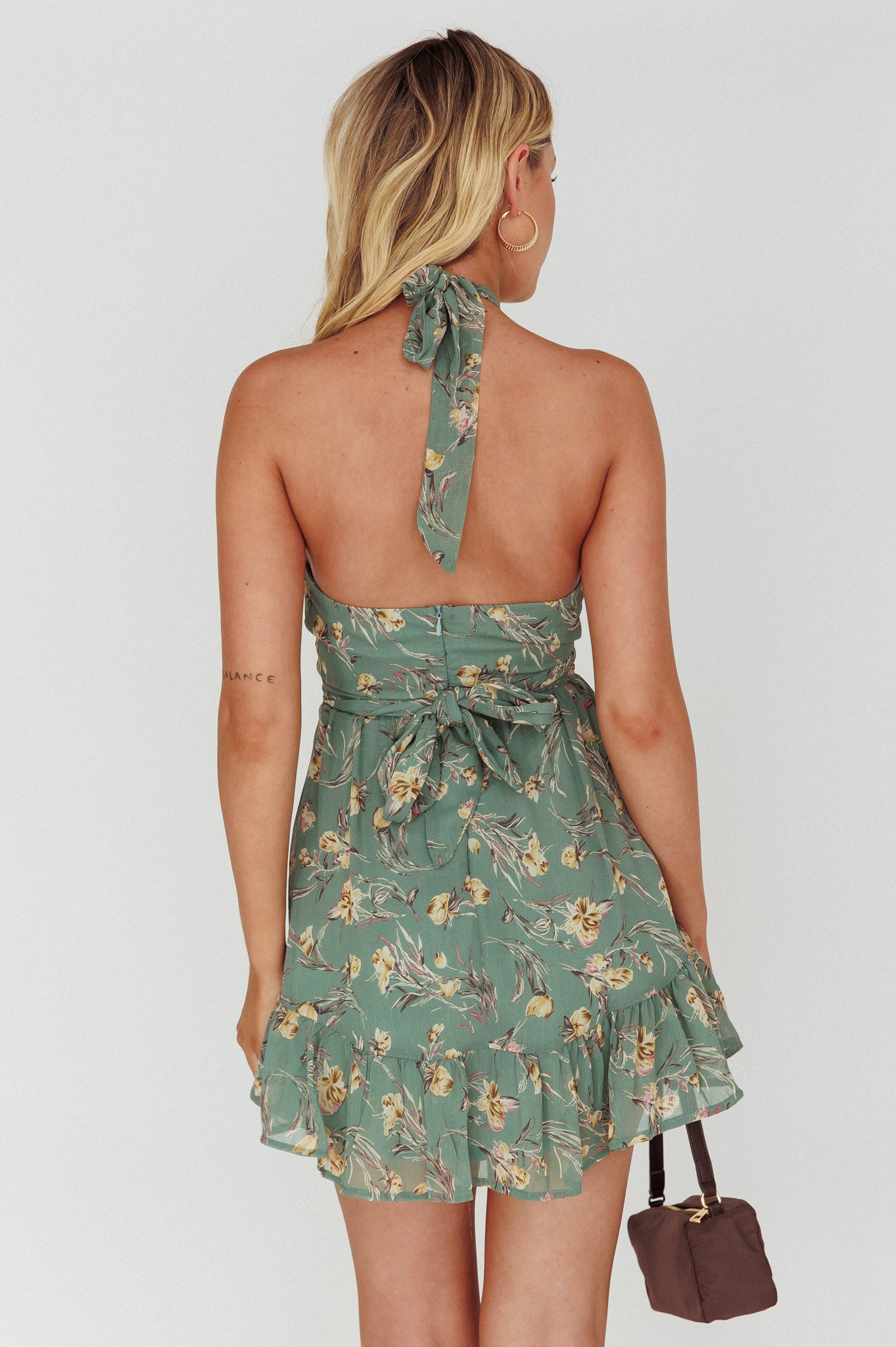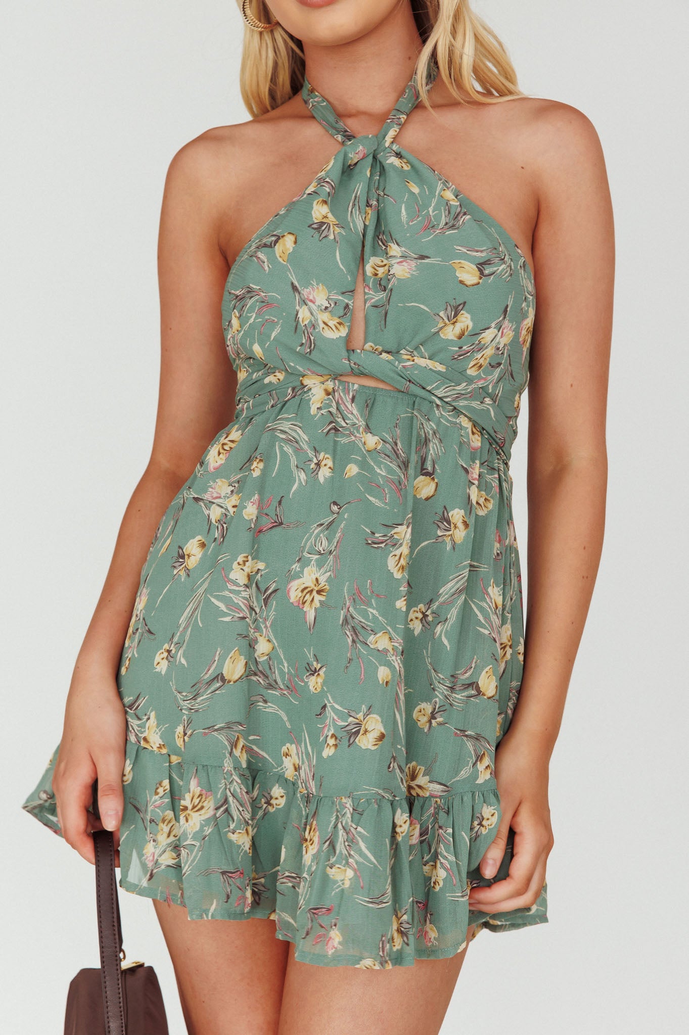 - Sage floral mini dress