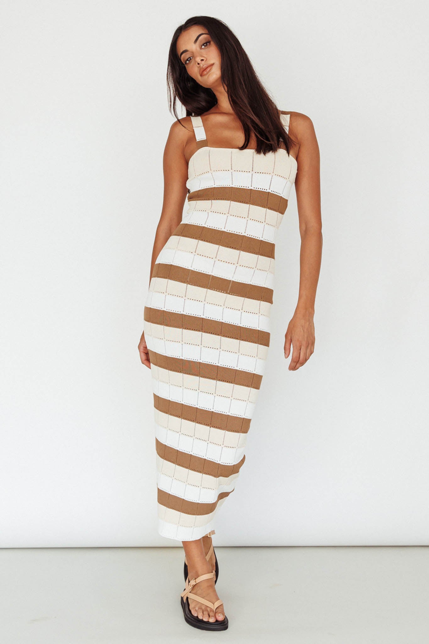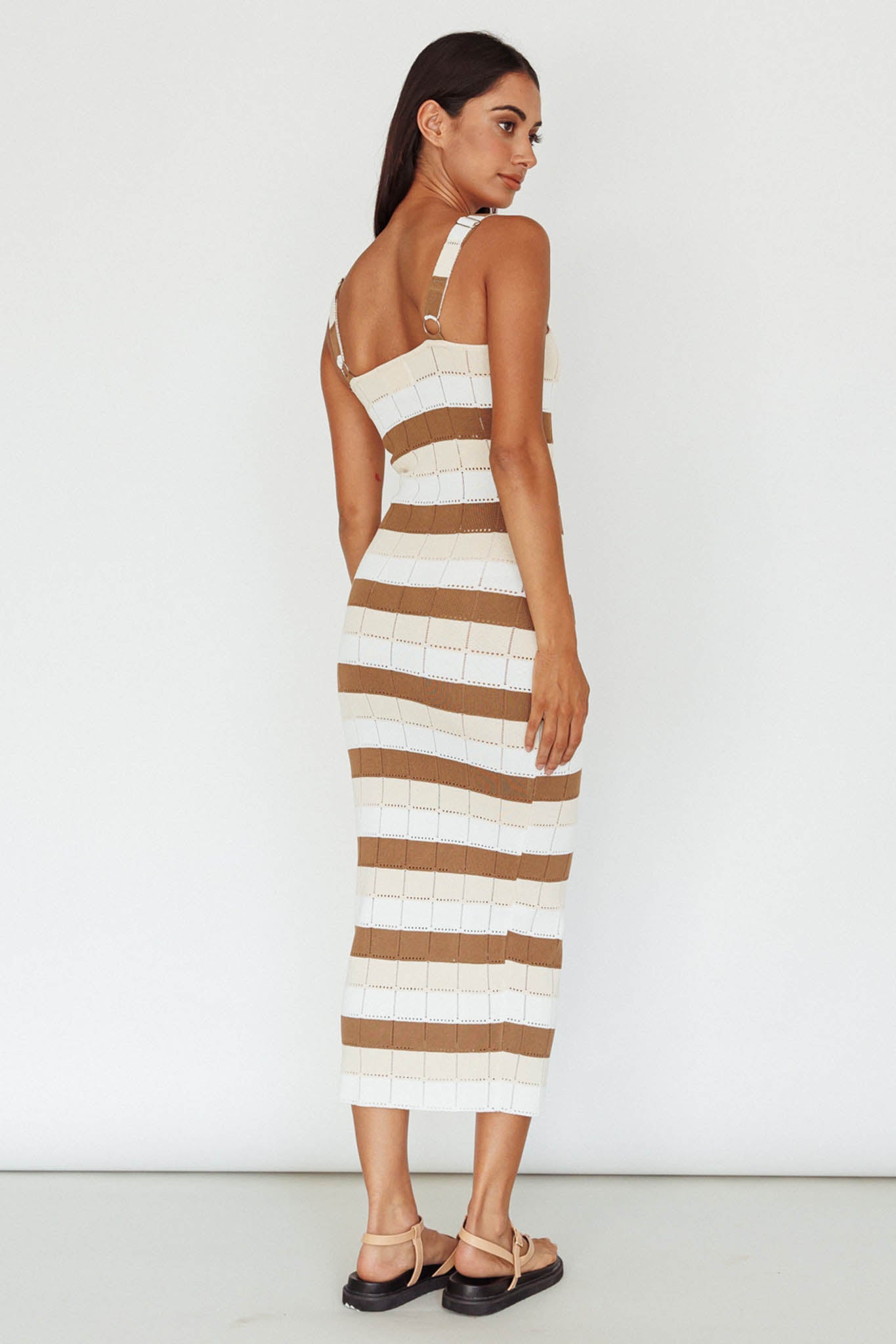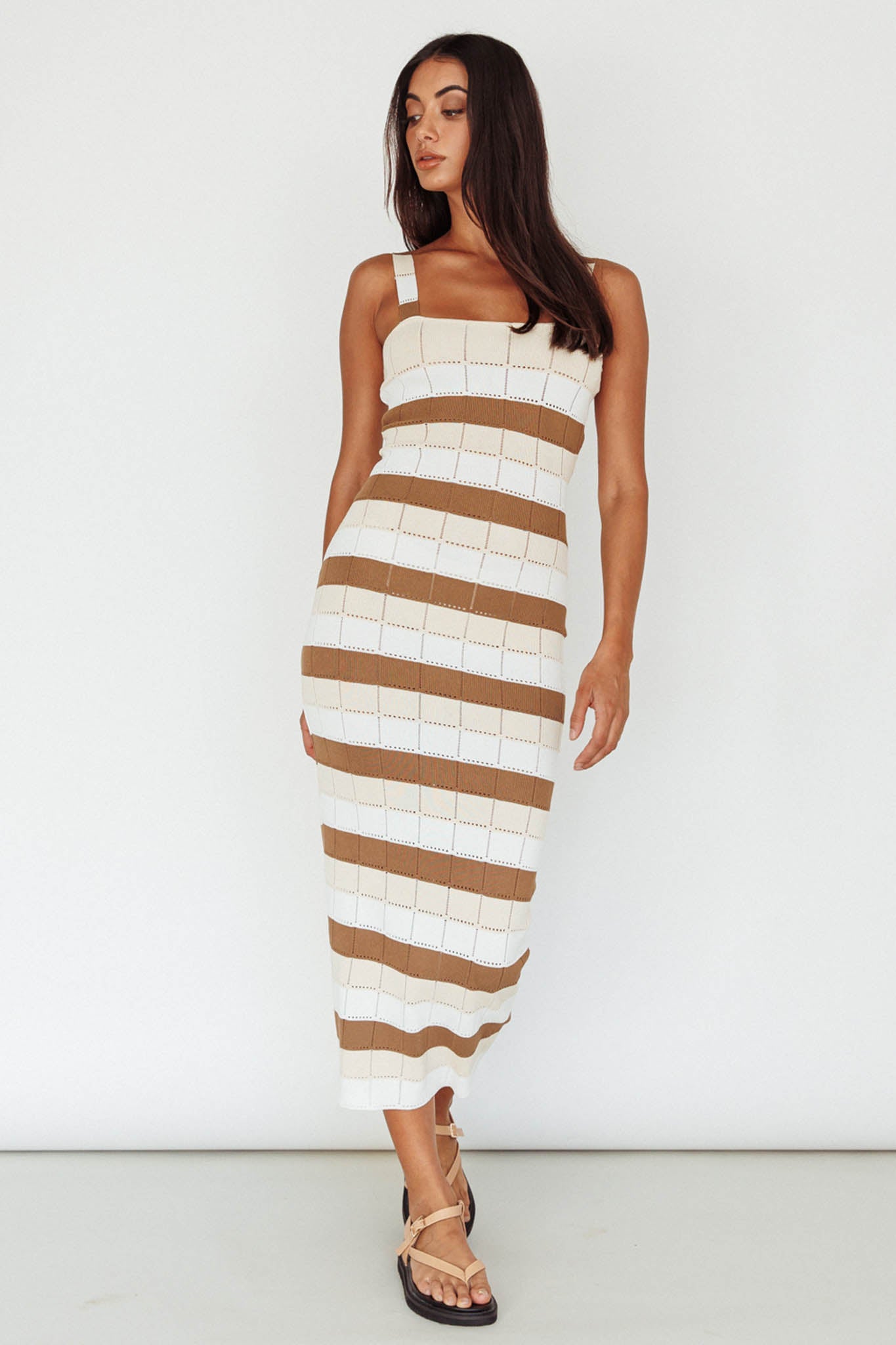 Our Chase The Sunrise midi dress is just what you need to complete your warm-weather wardrobe. Featuring a wide strap and soft knit, it's perfect for weekend coffee dates with your girls. Team it with slides and a tote for a look we are loving.