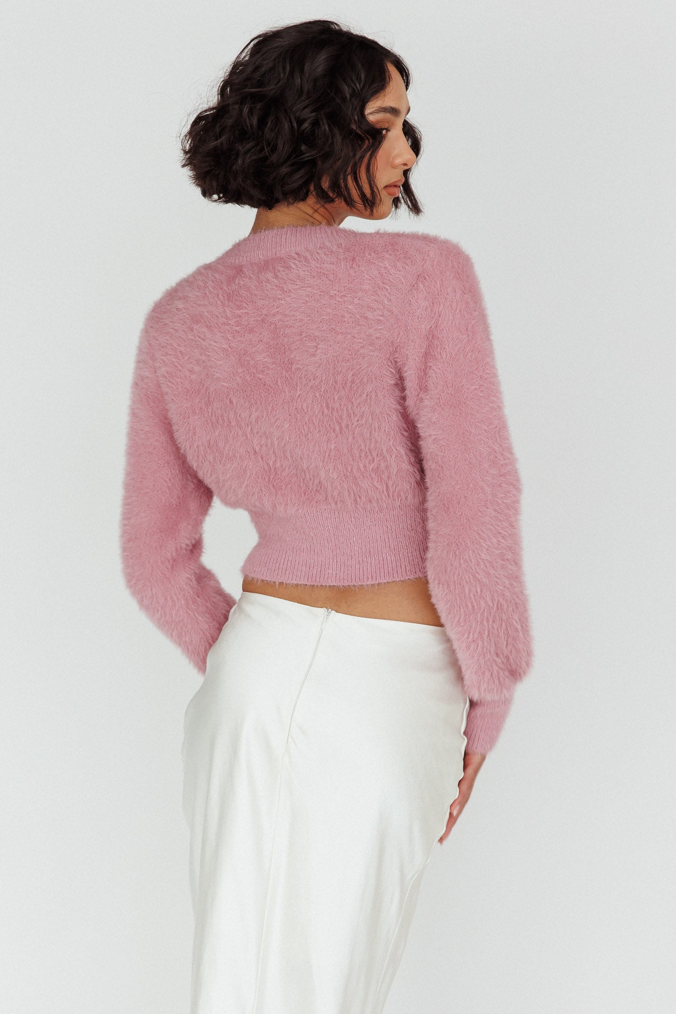 Sugar couldn't make you any sweeter in our Chica Dulce crop top. Featuring a fuzzy knit and adorable, diamante heart buttons. It's perfect for a playful date night teamed with wide-leg jeans or a satin midi skirt.