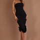 Make an entrance in our gorgeous Cloudland midi dress. Featuring a unique, asymmetrical hem line with a super cute fur trim. Perfect for a birthday celebration or girls' night out! Team it with strappy, silver heels and a clutch for an unforgettable look.