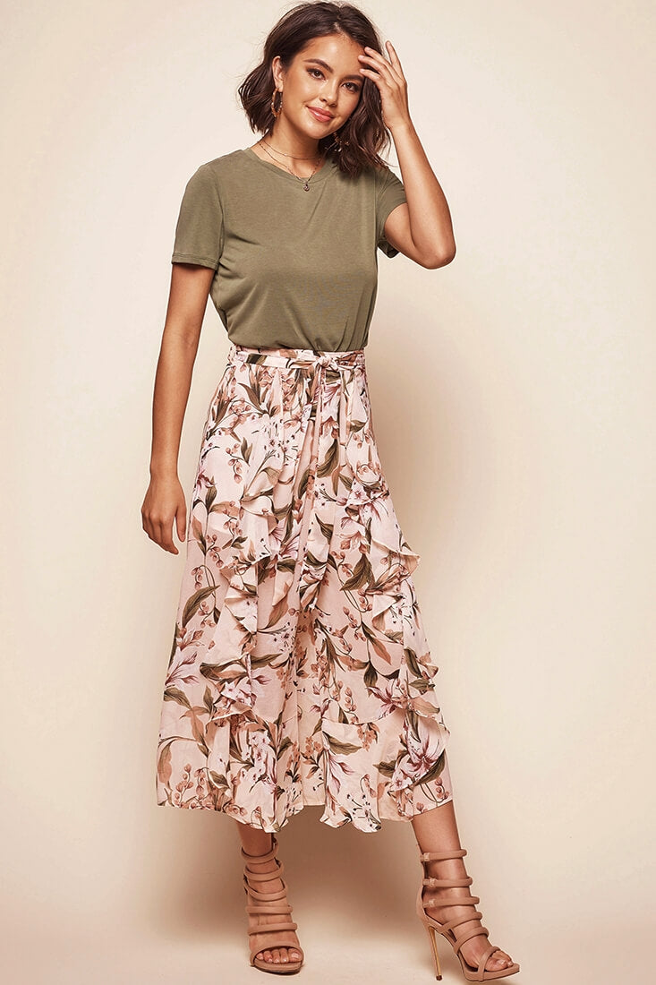 These on-trend wide leg pants are a summer essential. Featuring a wide ruffle down the front of each leg, and light, breezy fabric, these pants are the perfect cropped length and dreamy AF. Style them with a plain Tee, tucked in, for maximum Summer-chic vibes.