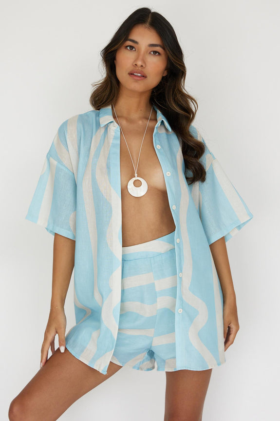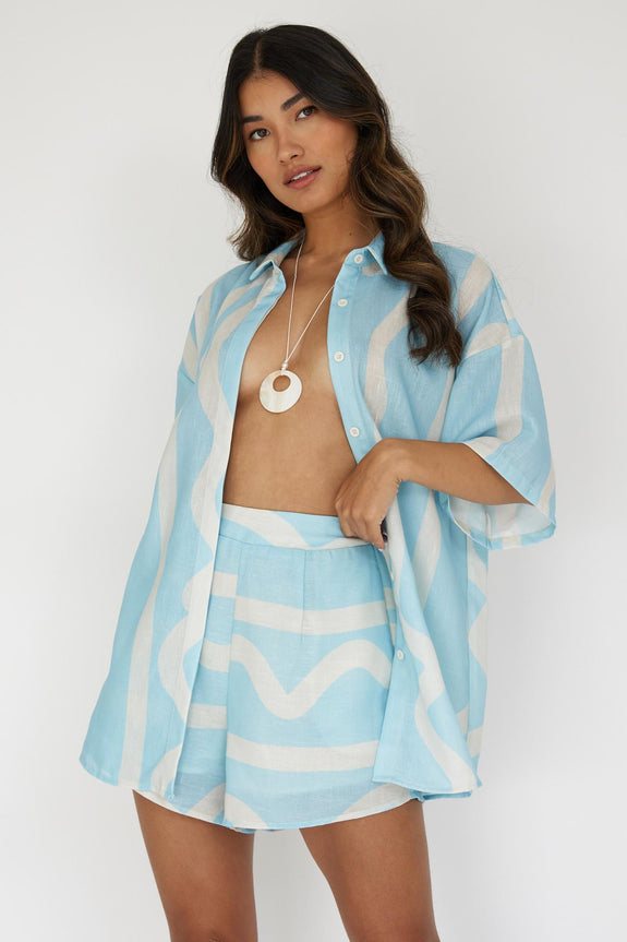 Cora Elastic Waist Shorts Print Baby Blue