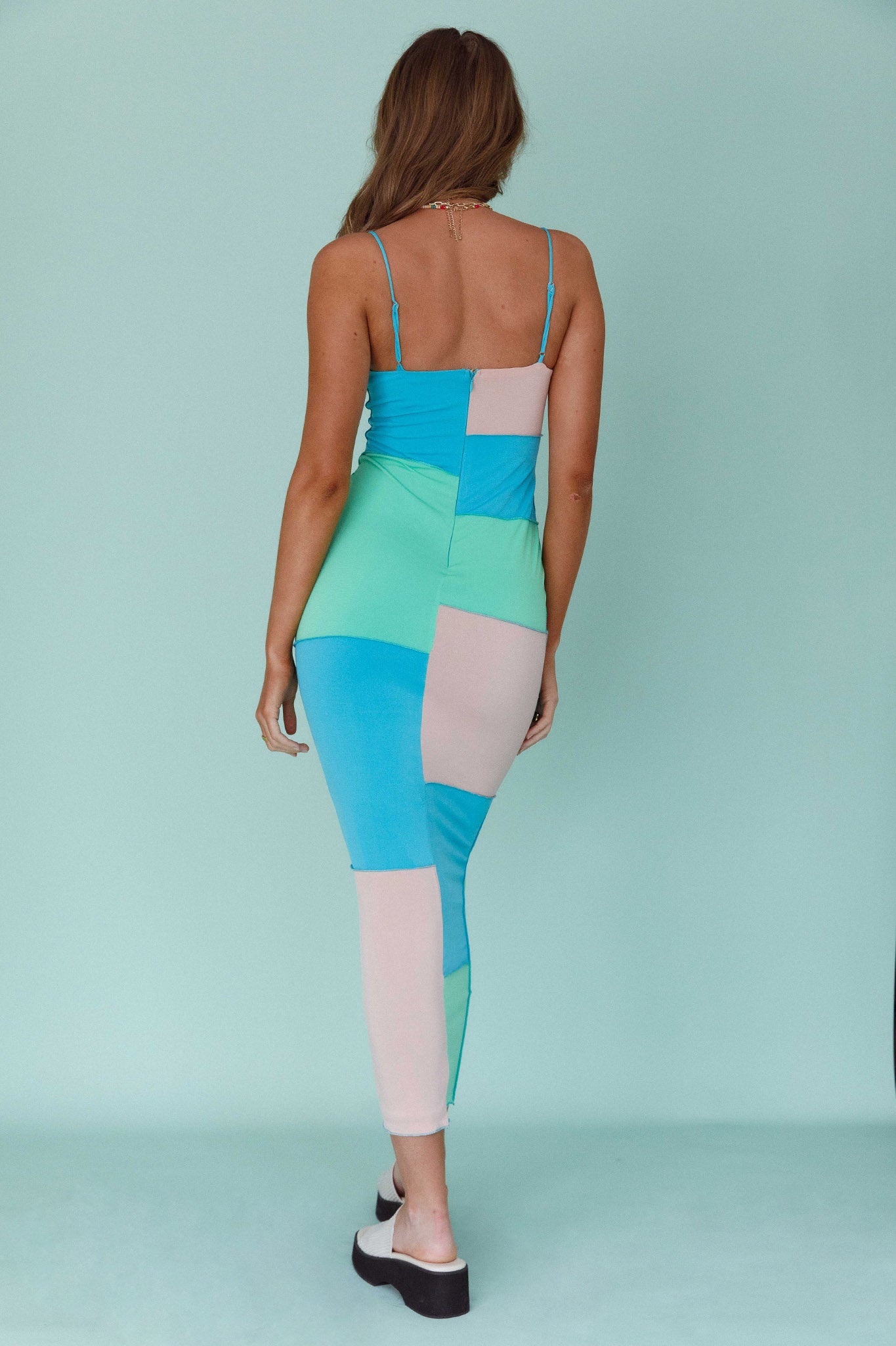 Chase your bliss in our chic Crossroad midi dress Featuring a unique geometric design with exposed overlocking and a stretchy fabric to hug your curves. Perfect for weekend brunch dates with your besties. Team it with slides and a tote for a cute-casual look we are loving.
