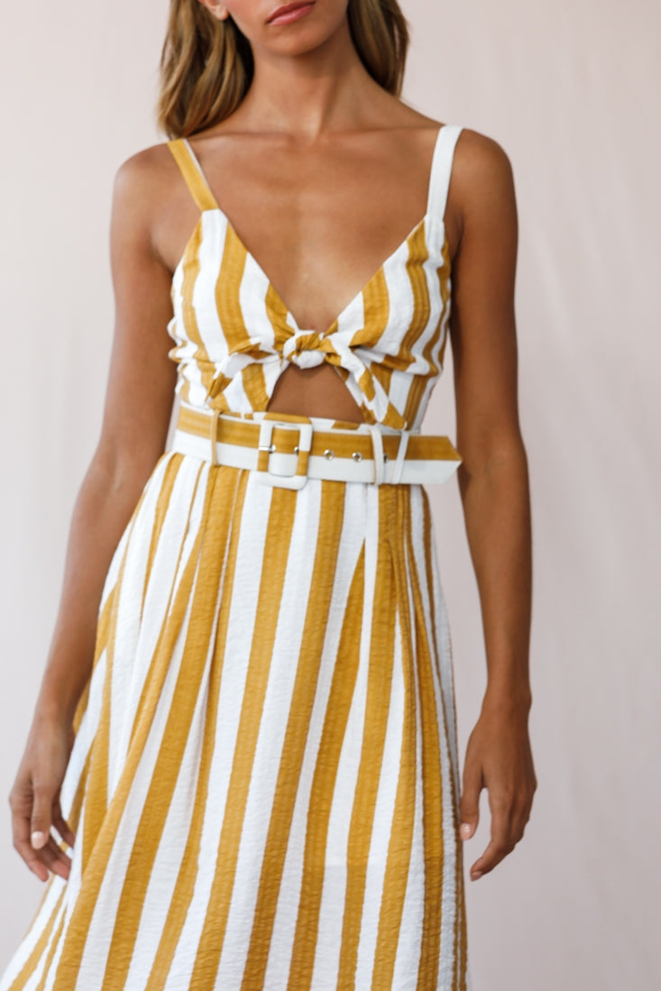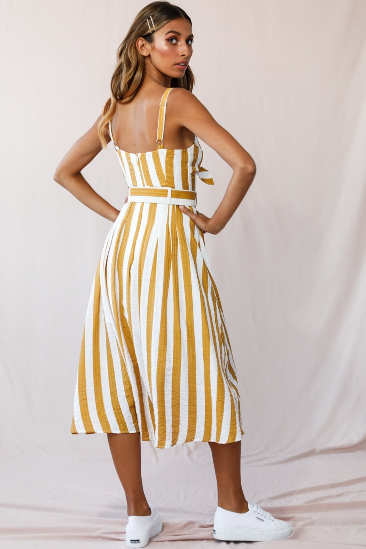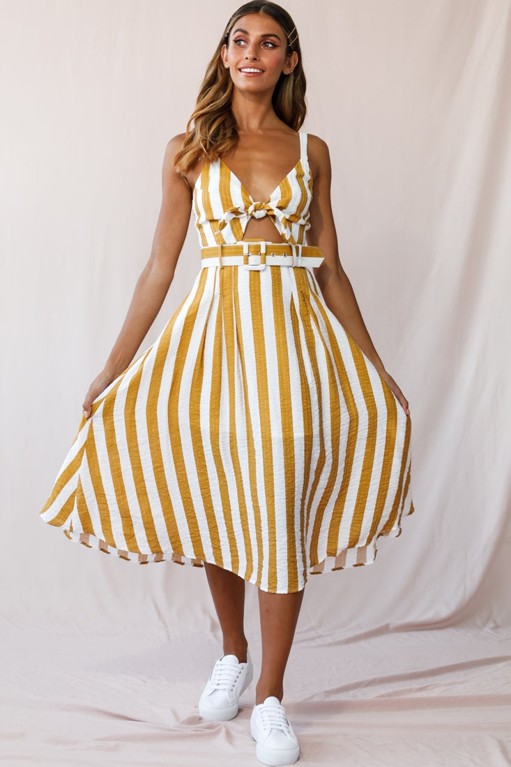 Okay cutie, you are stealing the show in our darling Crystal midi dress. Featuring adjustable shoulder straps, invisible zipper and an adorable tied knot and belt feature in the front. Perfect for a picnic with bae or strolling the farmer's markets on a warm, sunny day styled with sandals and a straw tote