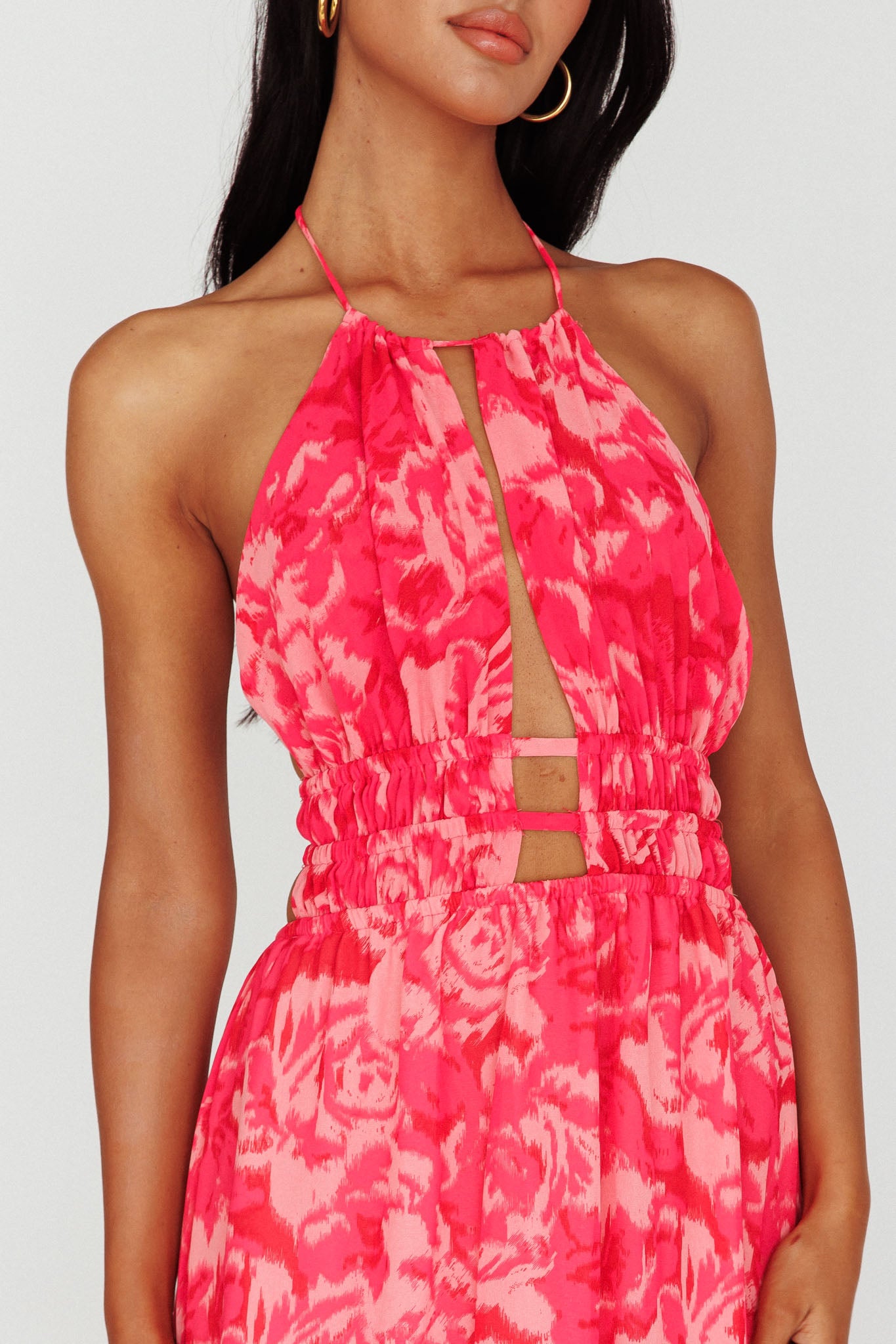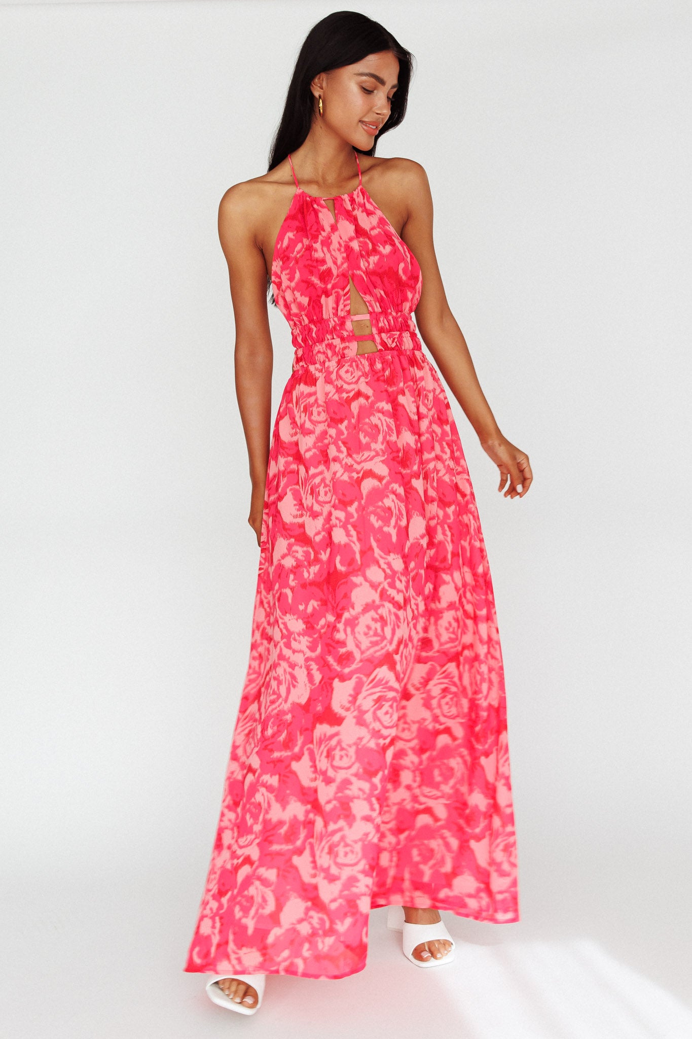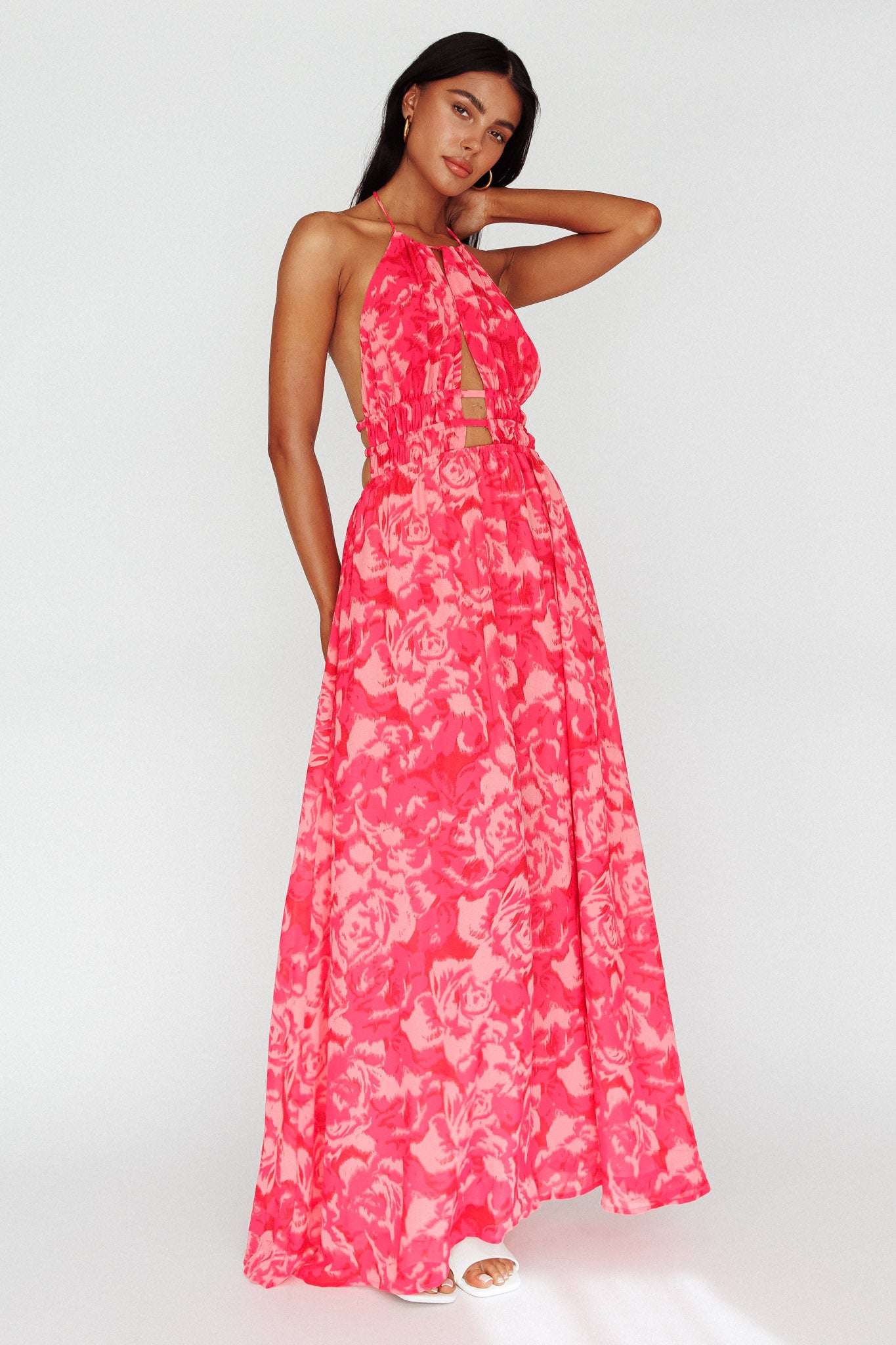 Cyndi Open Back Halterneck Maxi Dress Floral Pink