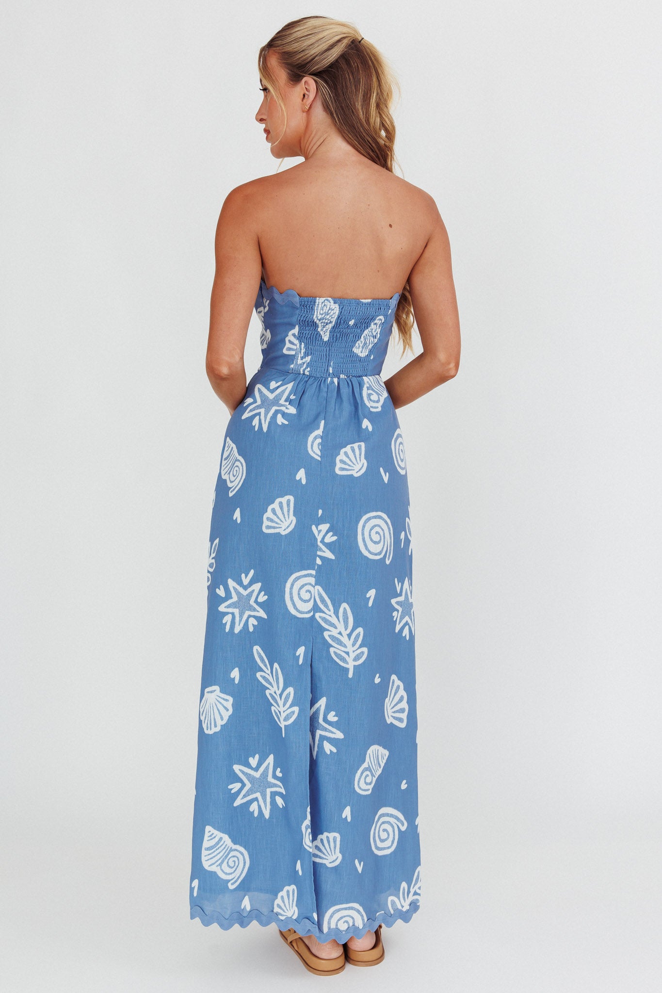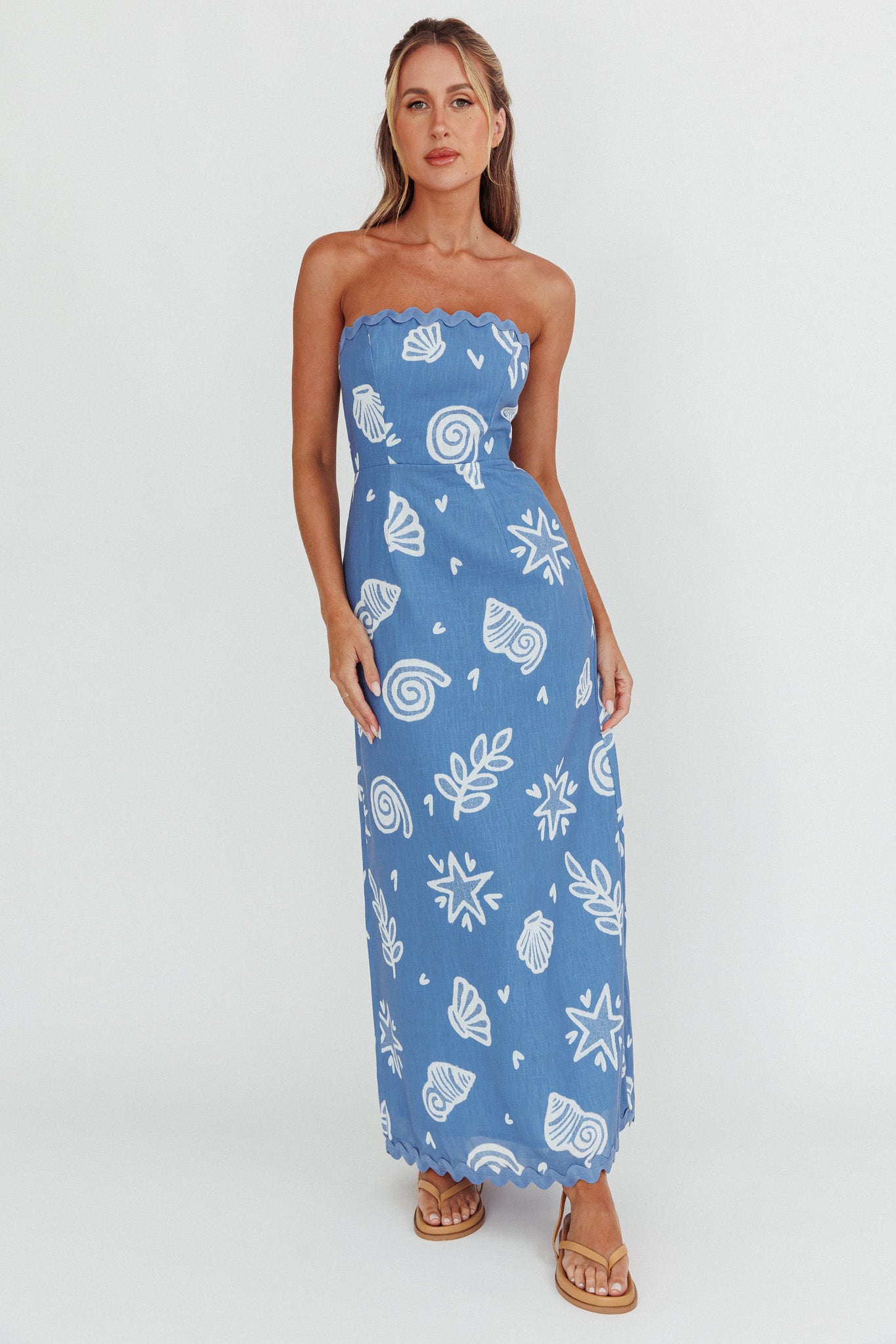 Cypress Ric Rac Trim Strapless Dress Shell Blue