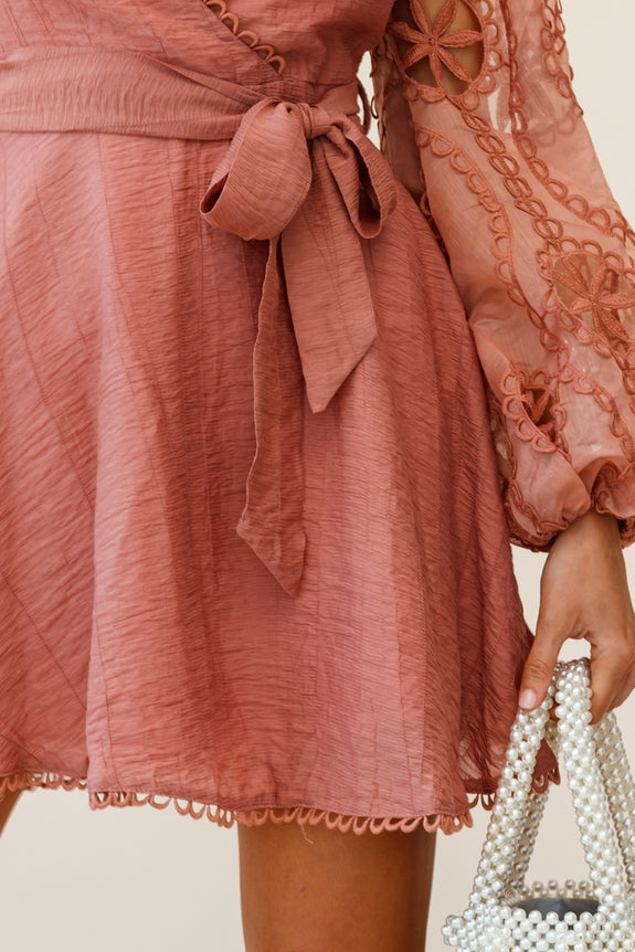 You'll be the style queen in our Dali dress. Partially lined, it features the prettiest embroidered chiffon balloon sleeves, surplice neckline, waist tie and zipper up the back. Wear it to a party or special occasion teamed with perspex heels and gold hoop earrings.