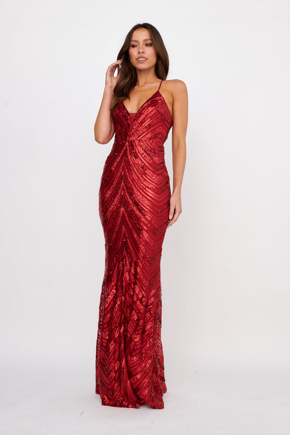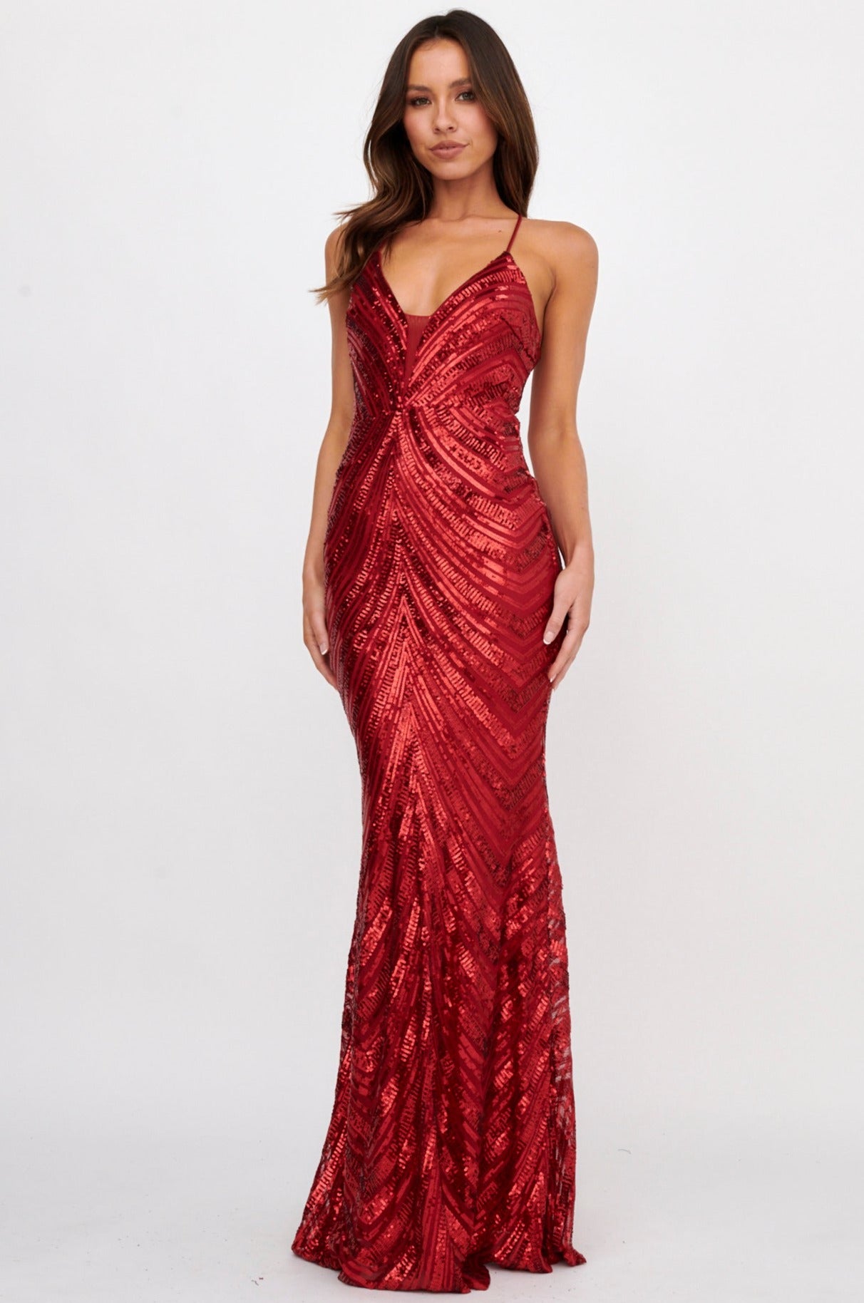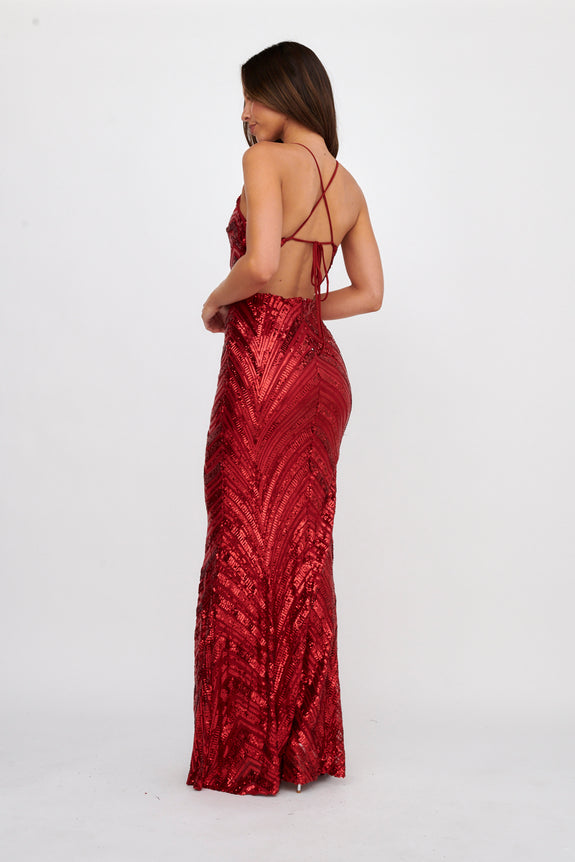 Dalila Open Tied Back Sequin Maxi Dress Red