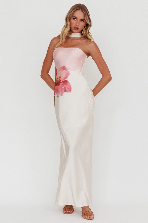 Damsel Reverse Halter Maxi Dress Flower Pink