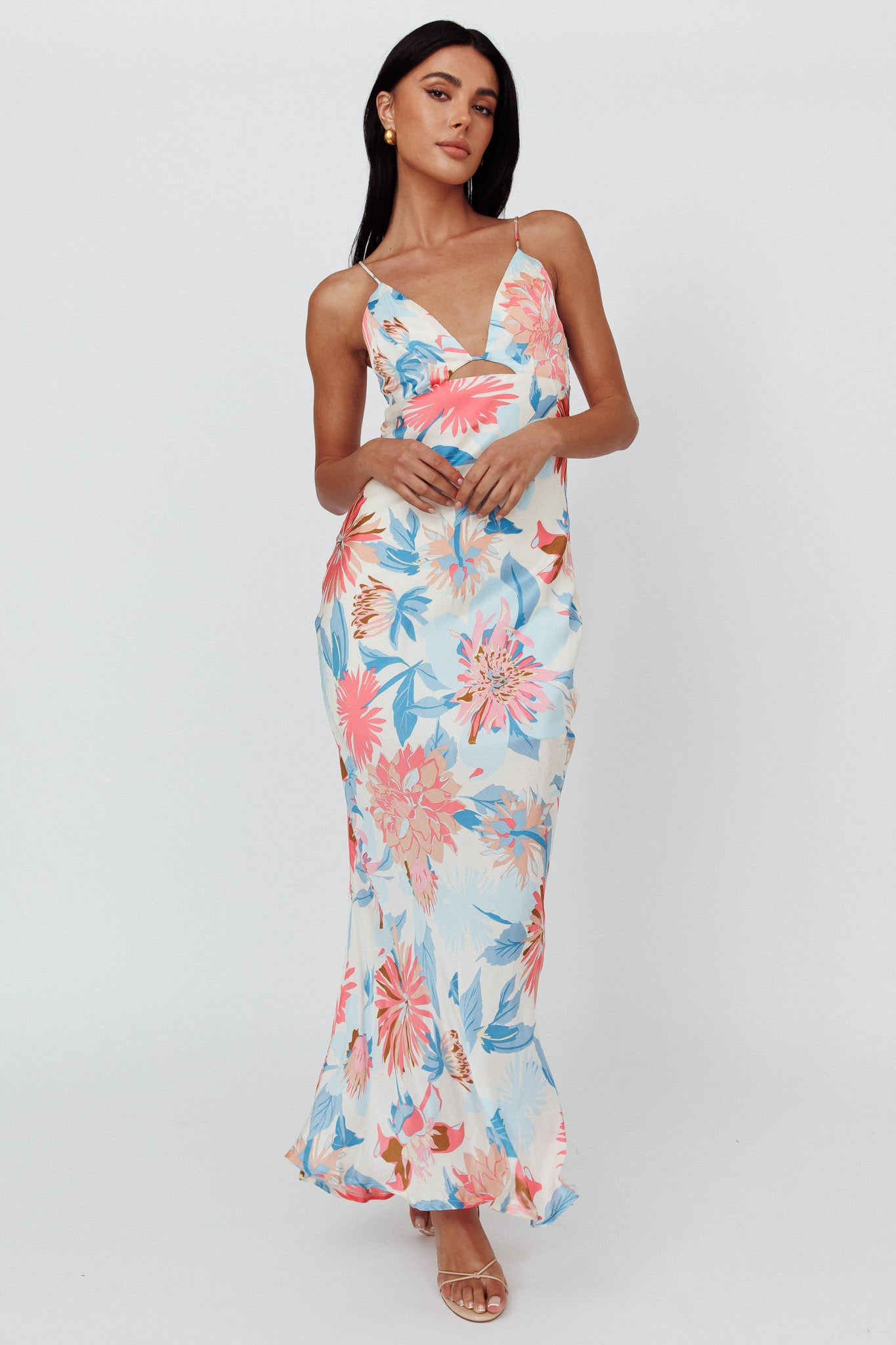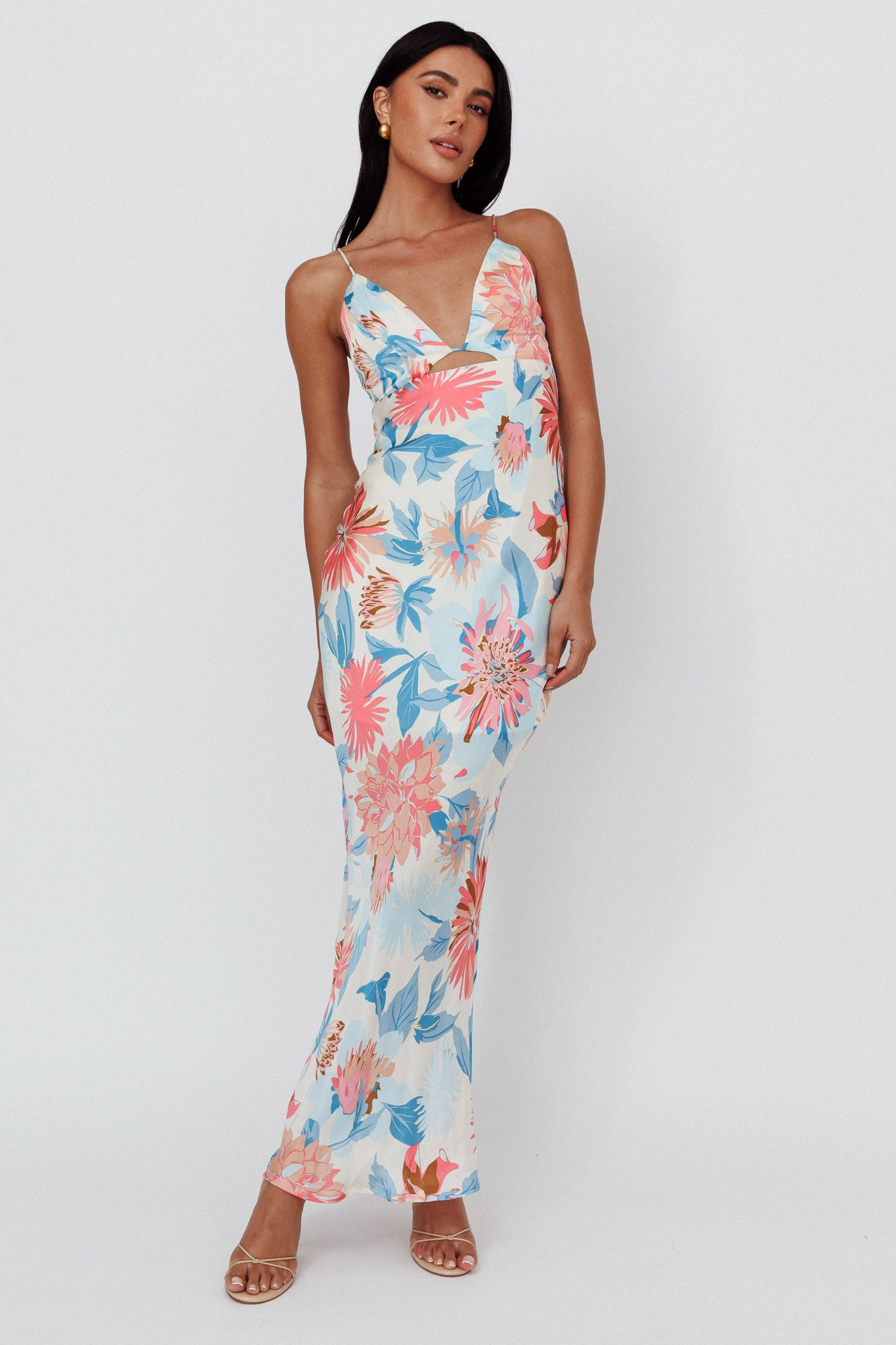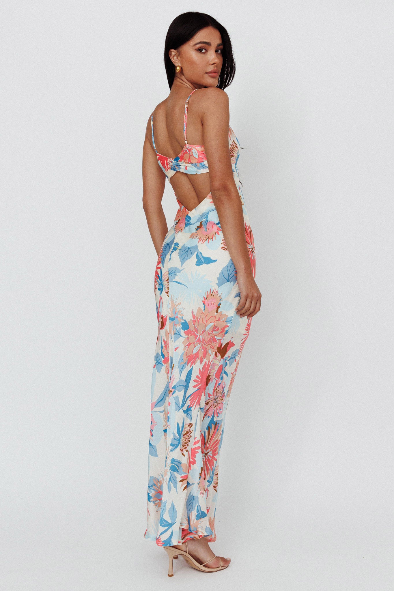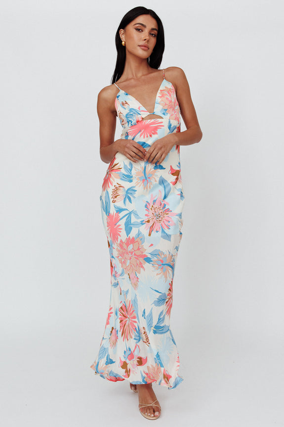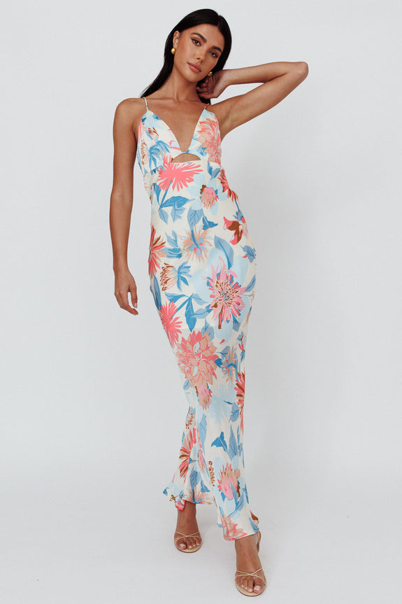 Dance Again Cut-Out Back Maxi Dress Floral Blue