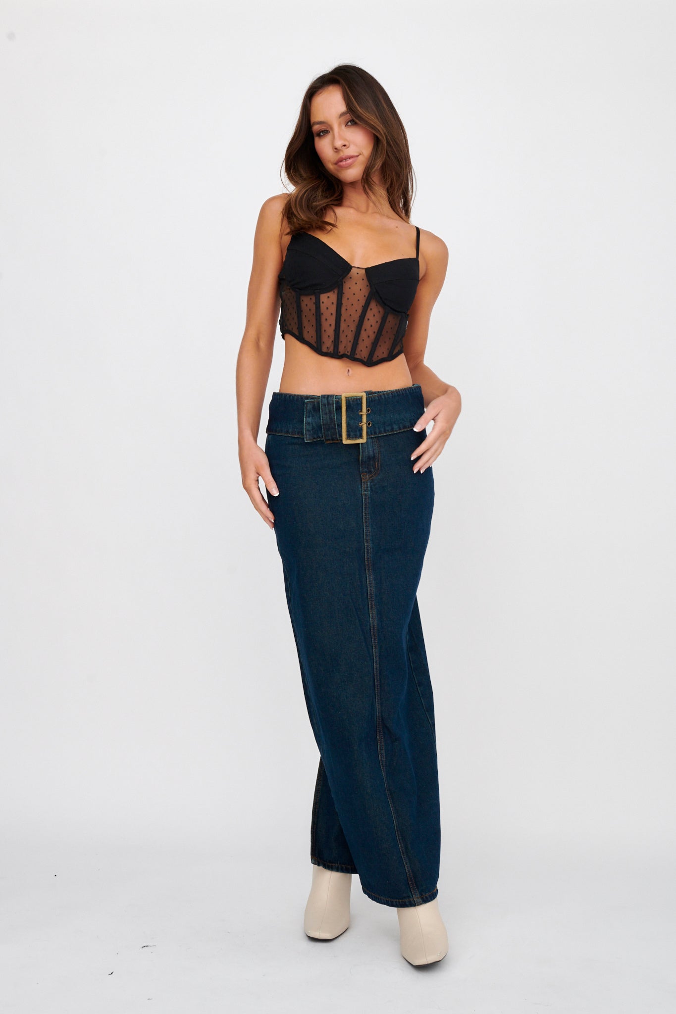 You will stop traffic in our gorgeous Dance Away crop top. Featuring a pretty hail spot mesh, it's perfect for a night out with your girls teamed with a mini skirt and boots for a hot look that is sure to turn heads.