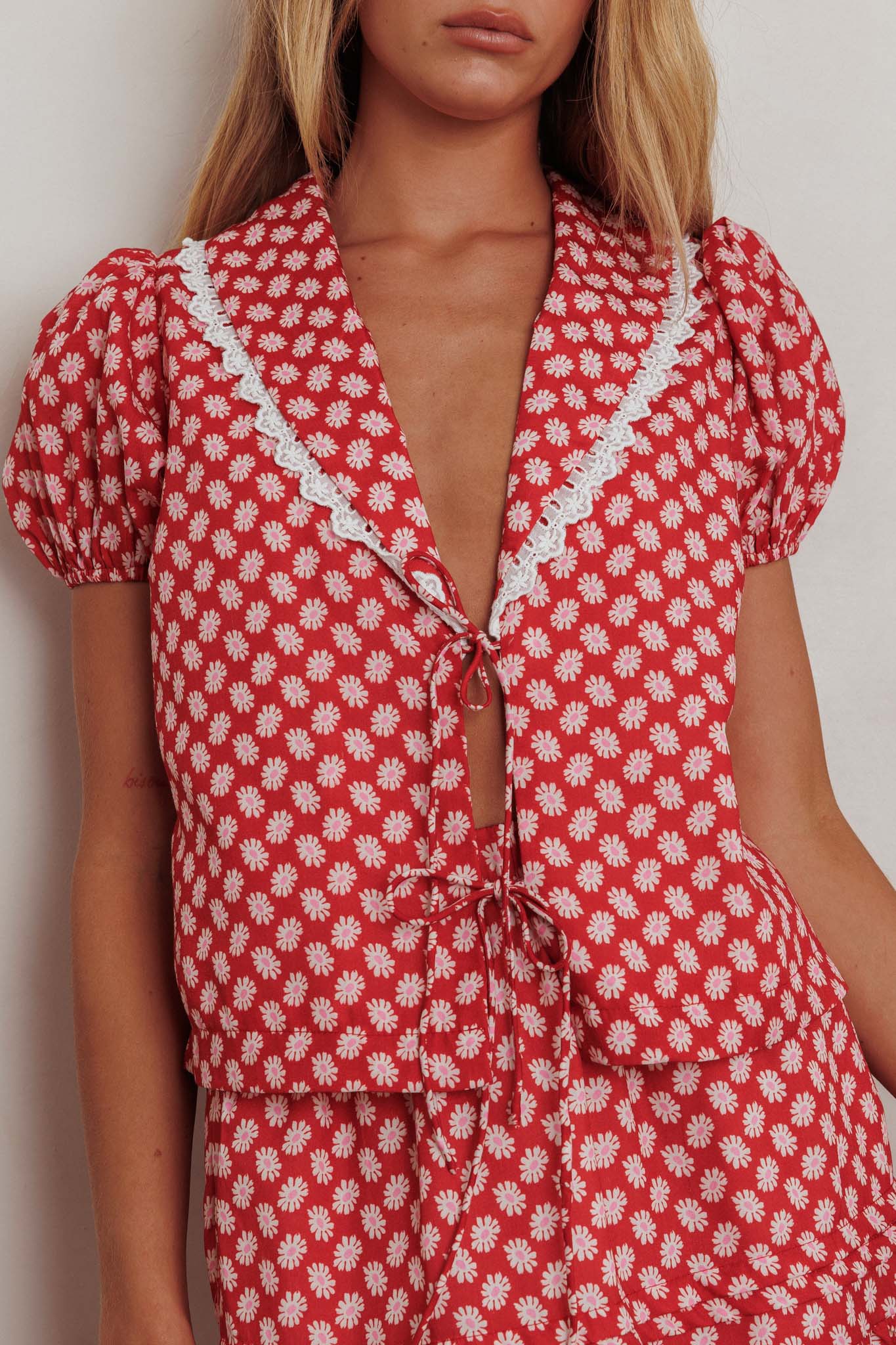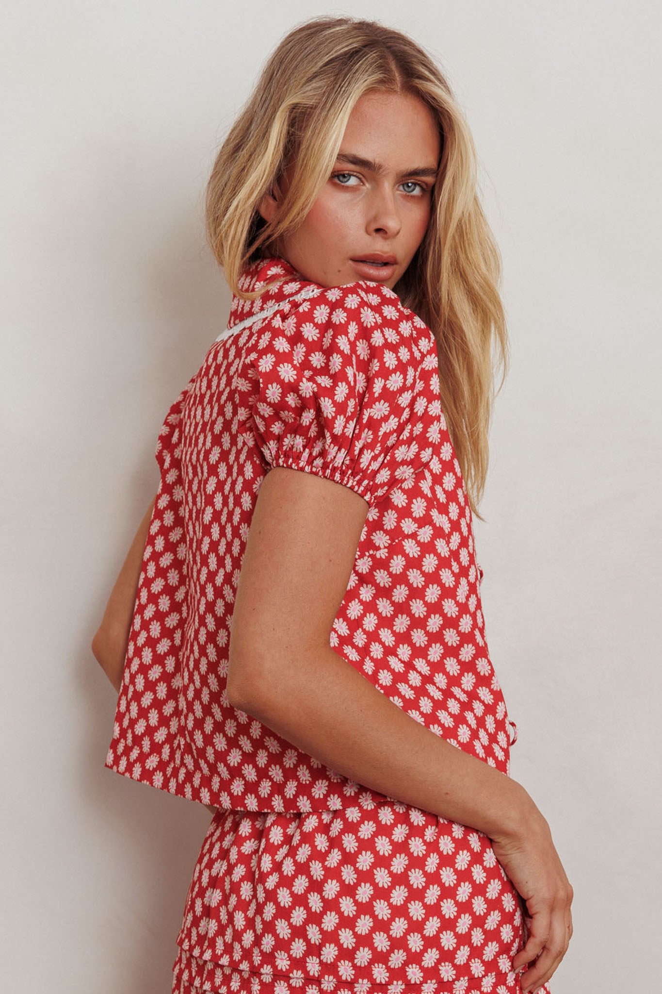 Hello, sunshine! We've fallen head over heels for our dreamy Danessa top. It features the sweetest frill-trimmed collar and tie closures in the front. Wear it on weekends for coffee with your girls, teamed with its matching skirt and sandals for a chic look.