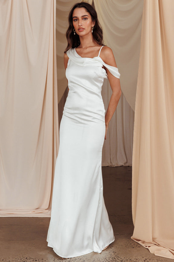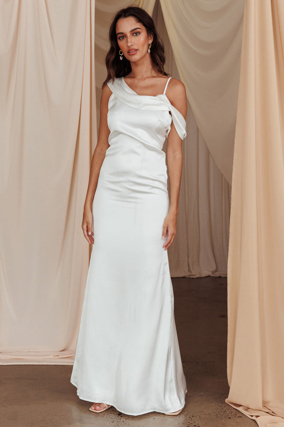 Make a statement in our stunning Dawna maxi dress. Featuring a gorgeous draped sleeve design, it's perfect for bridal events or a special occasion. Team it with white heels and a satin clutch for an unforgettable look.