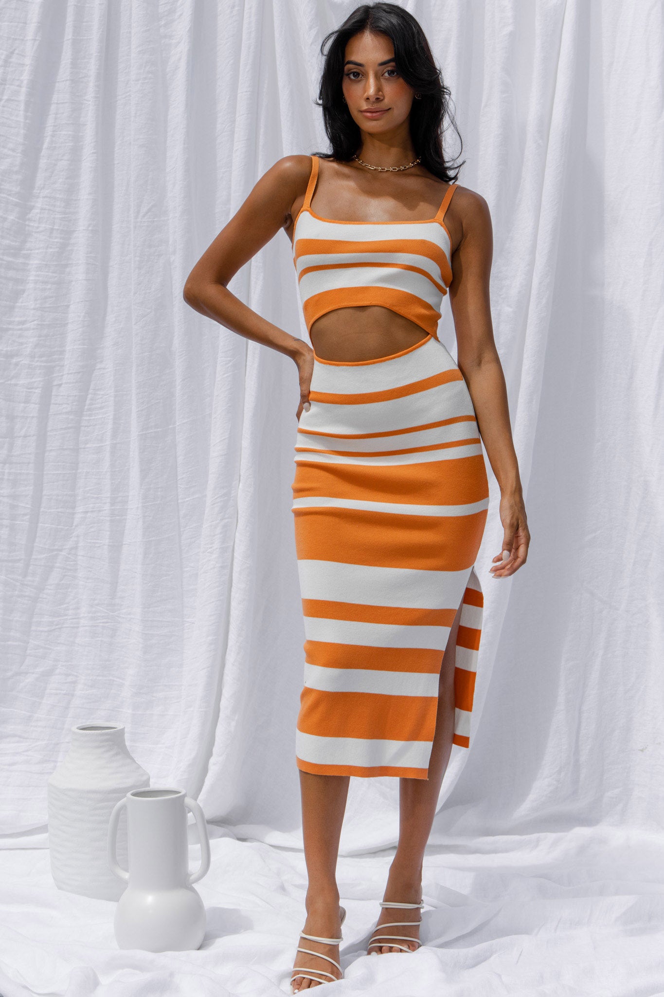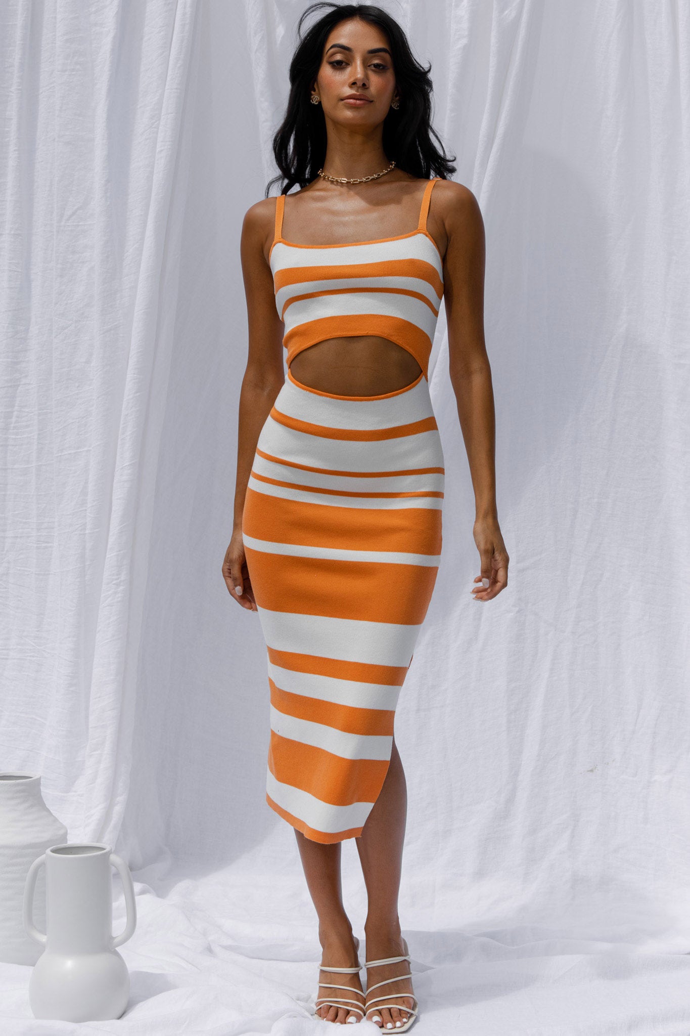 You will be flooded with compliments in our gorgeous Dayana midi dress. We are obsessed with its cut-out waist and striped knit fabric. Perfect for a weekend lunch date with your crush teamed with tan mules and a tote. Super cute!