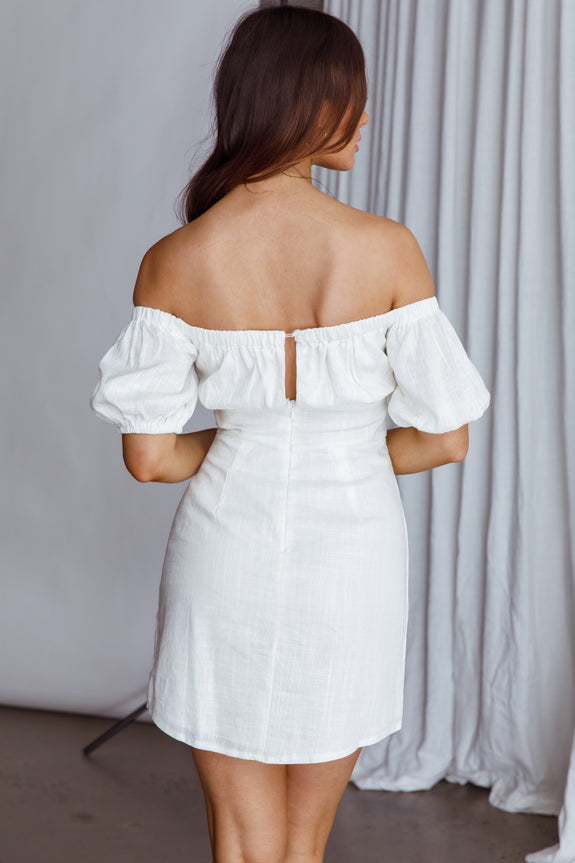 Dayanara Off-Shoulder Puff Sleeve Dress White