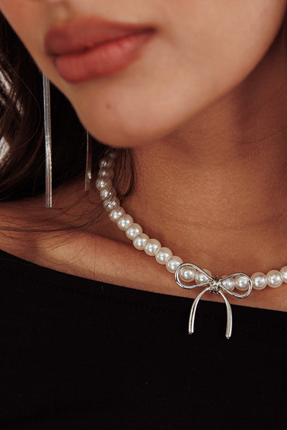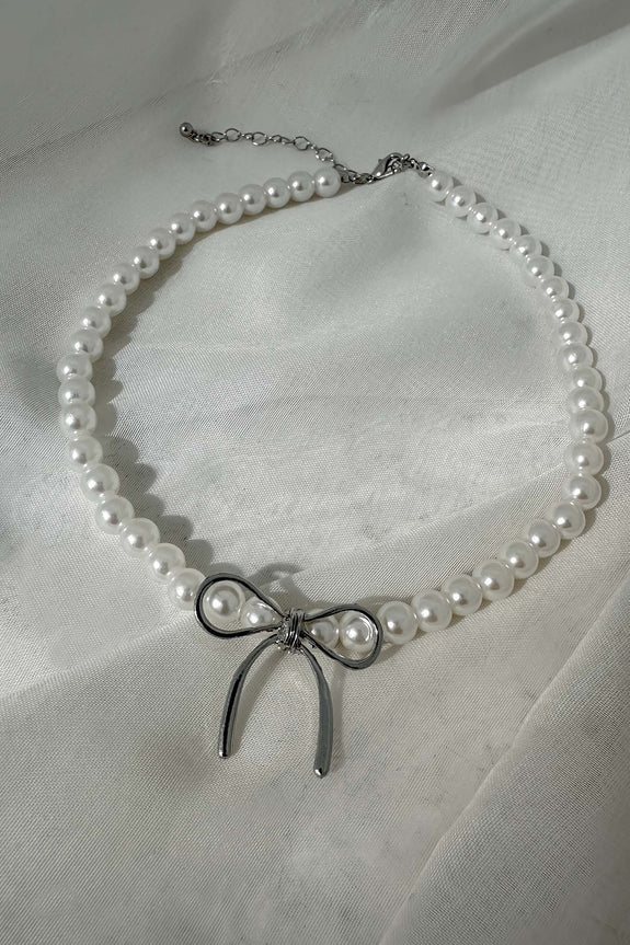 Elevate your look with our gorgeous Daydream necklace. We are in love with the feminine bow accent and dreamy pearl beads. It's perfect for everyday wear or a special occasion. Team it with our Surreal dress and diamante heels for a look that have you feeling like a princess.