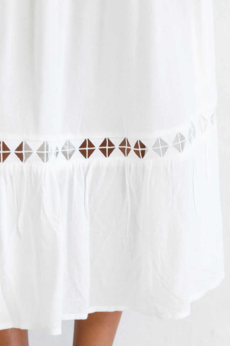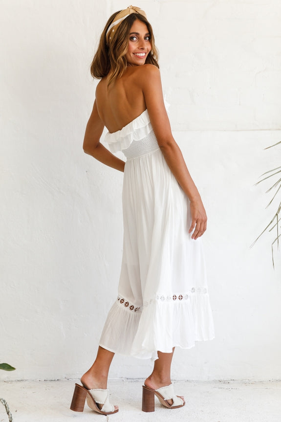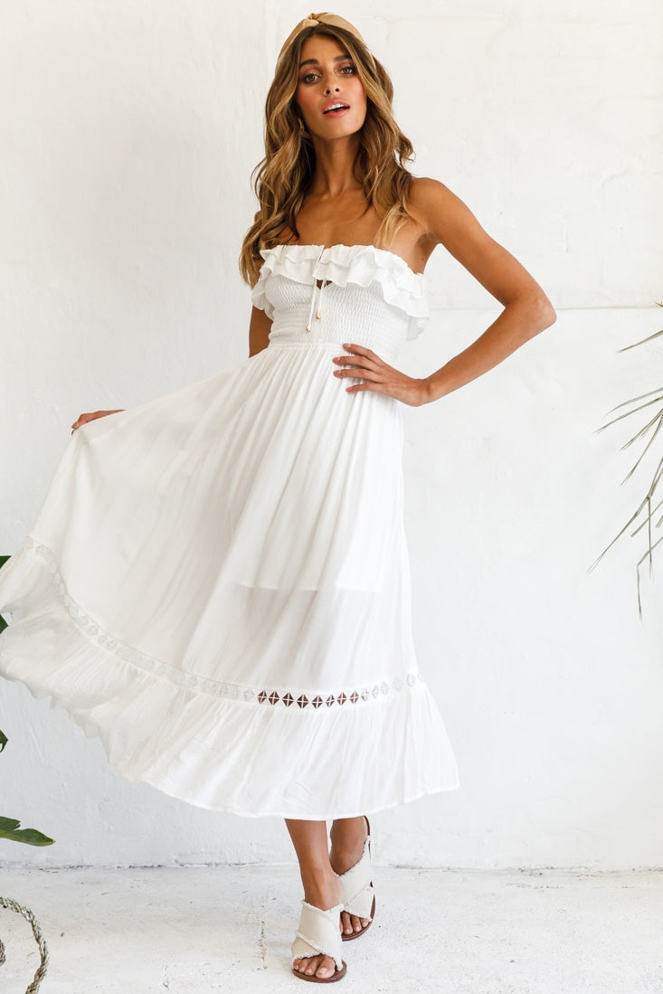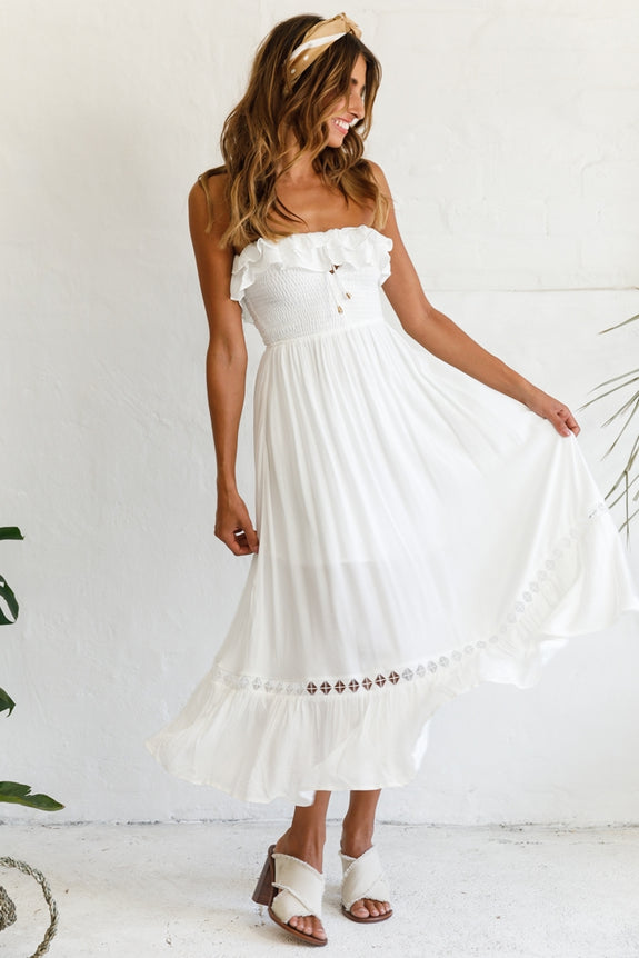 Daydream Shirred Bust Frill Trim Maxi Dress White