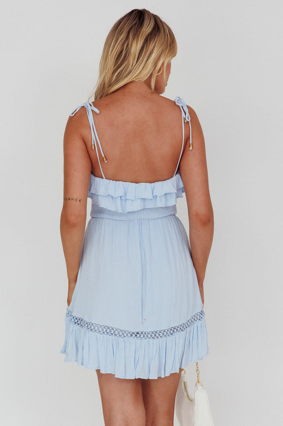 Daydream Shirred Bust Frill Trim Mini Dress Ice Blue