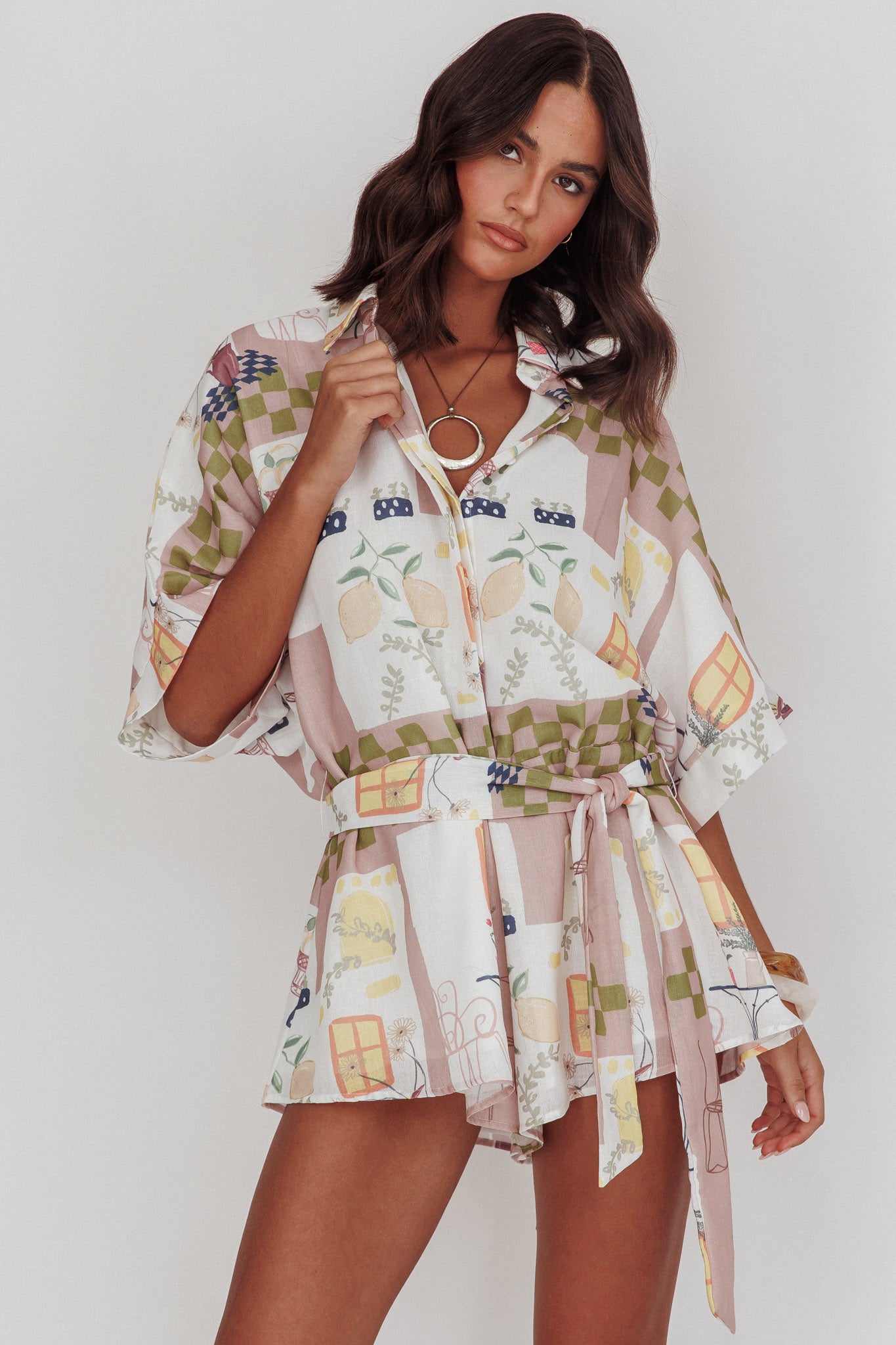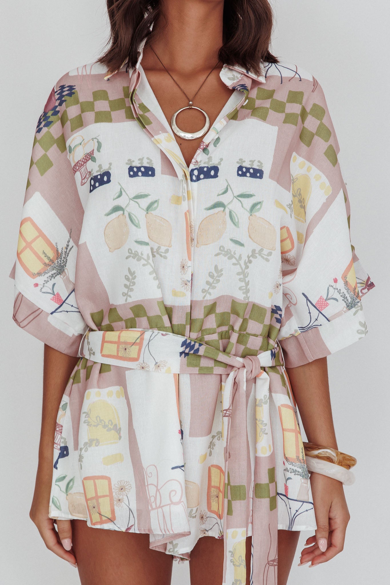 Breeze through your day in style in our chic Daytona Beach romper. Featuring a relaxed fit and removable waist tie, it's perfect for weekend coffee dates with your girls teamed with a straw tote and slides.