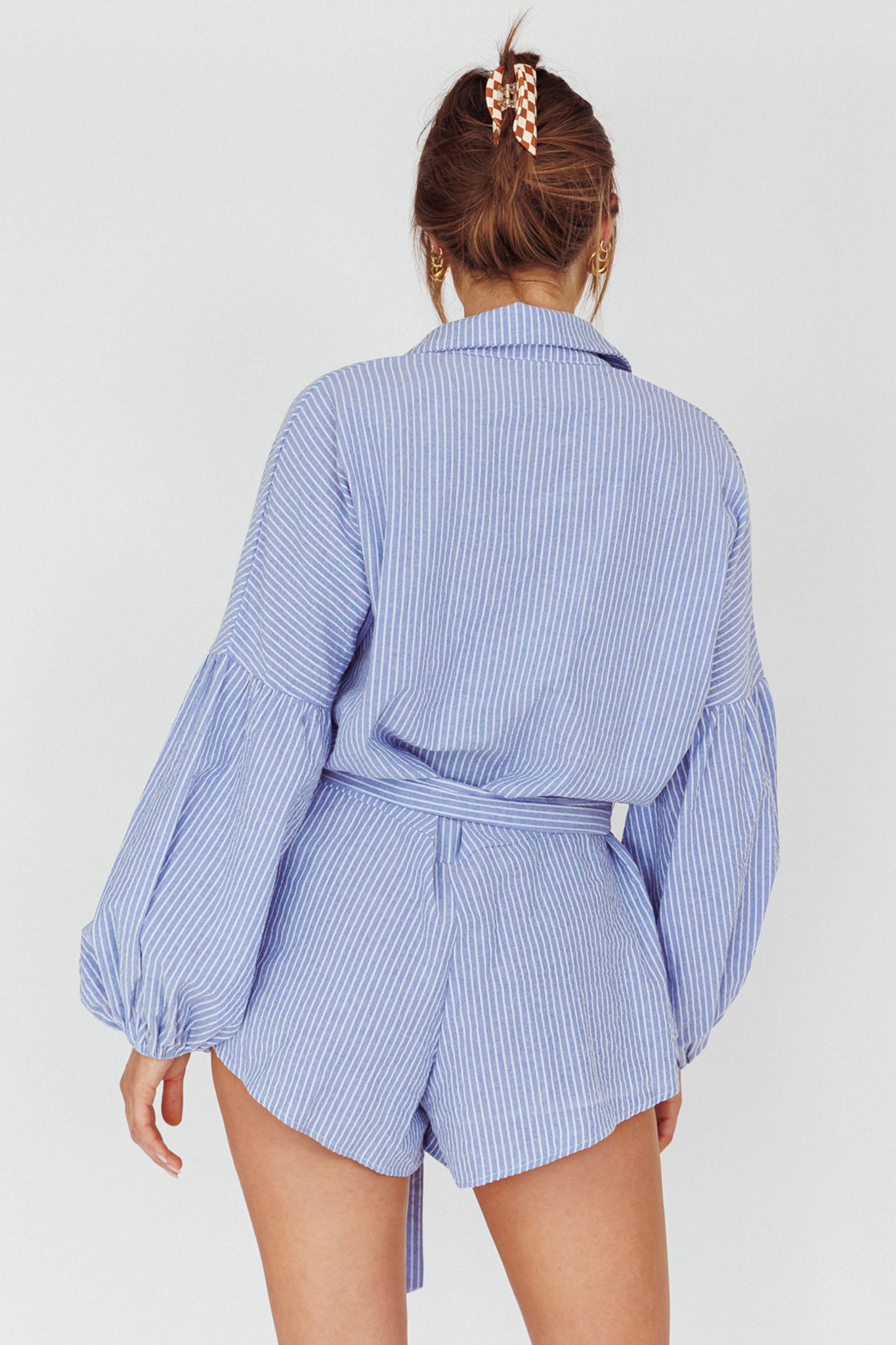 Daytona Beach Long Sleeve Shirt Romper Blue Stripe
