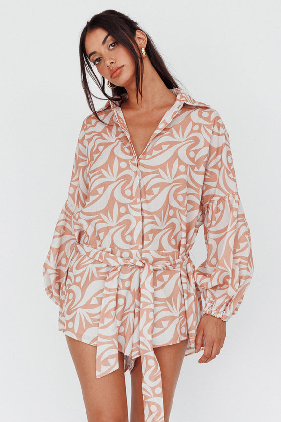 Daytona Beach Long Sleeve Shirt Romper Print Peach