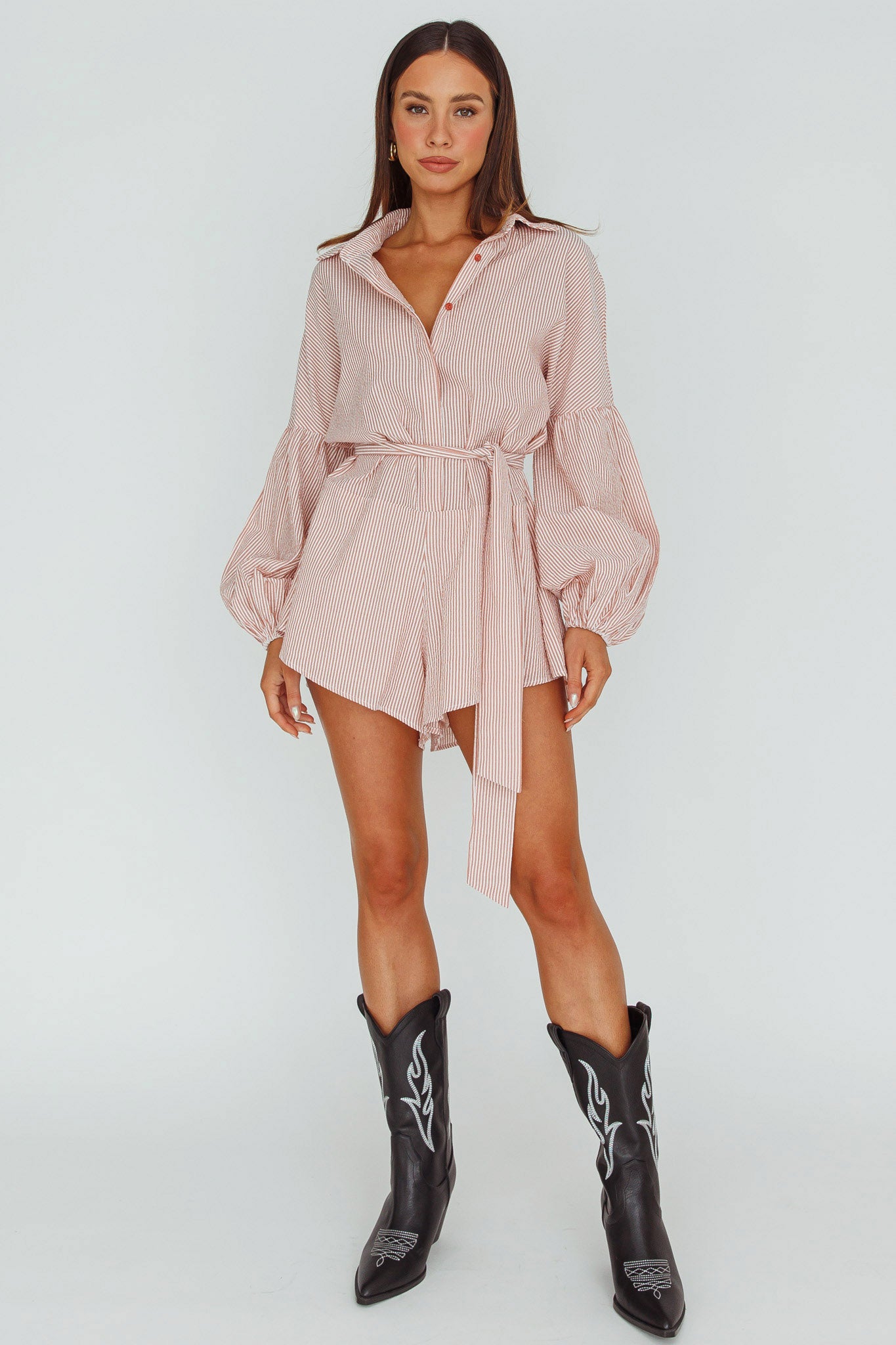 Daytona Beach Long Sleeve Shirt Romper Terracotta Stripe