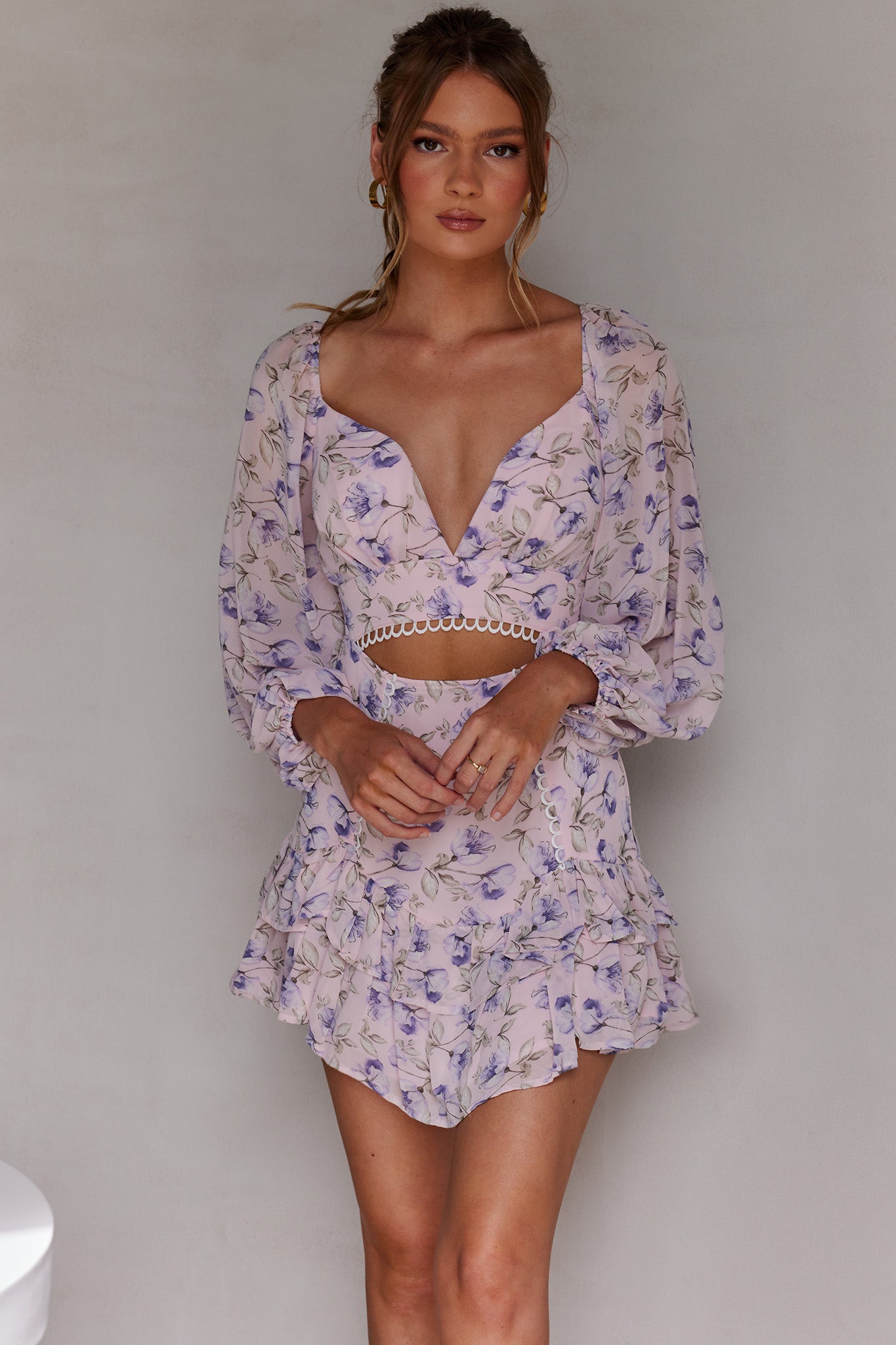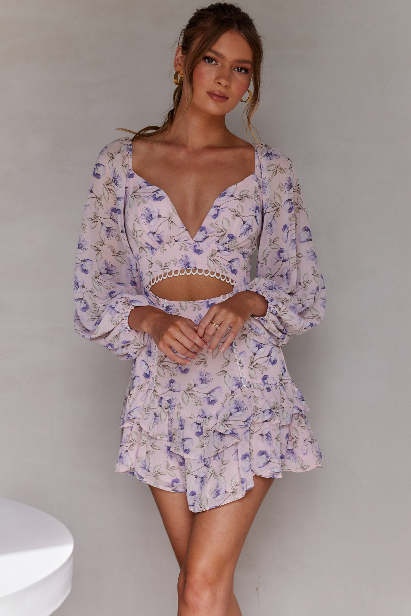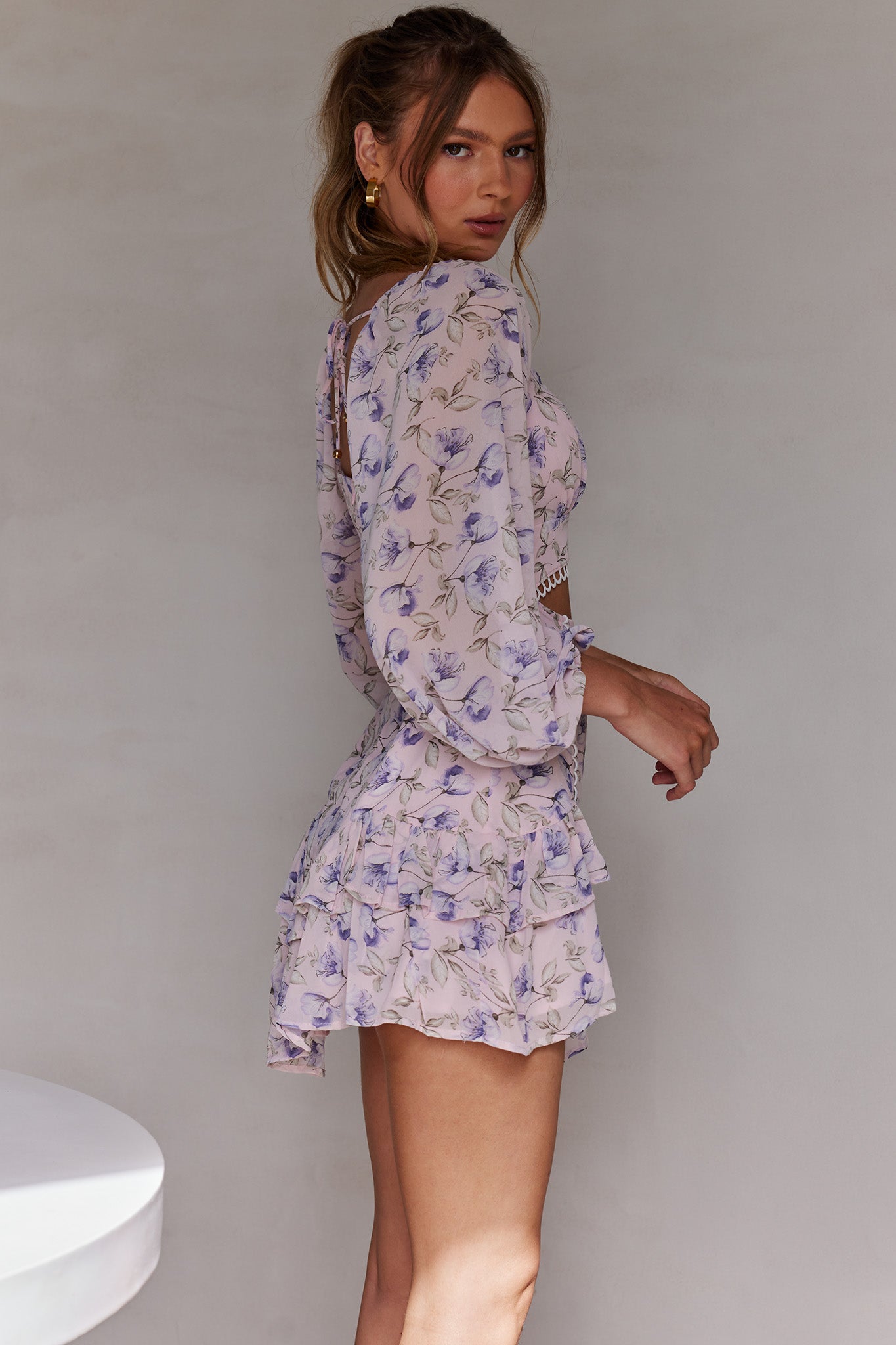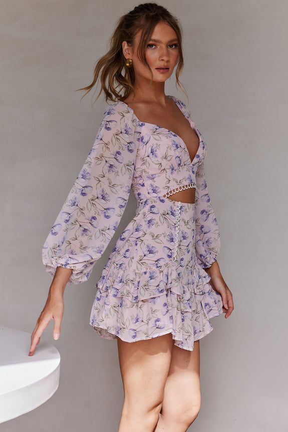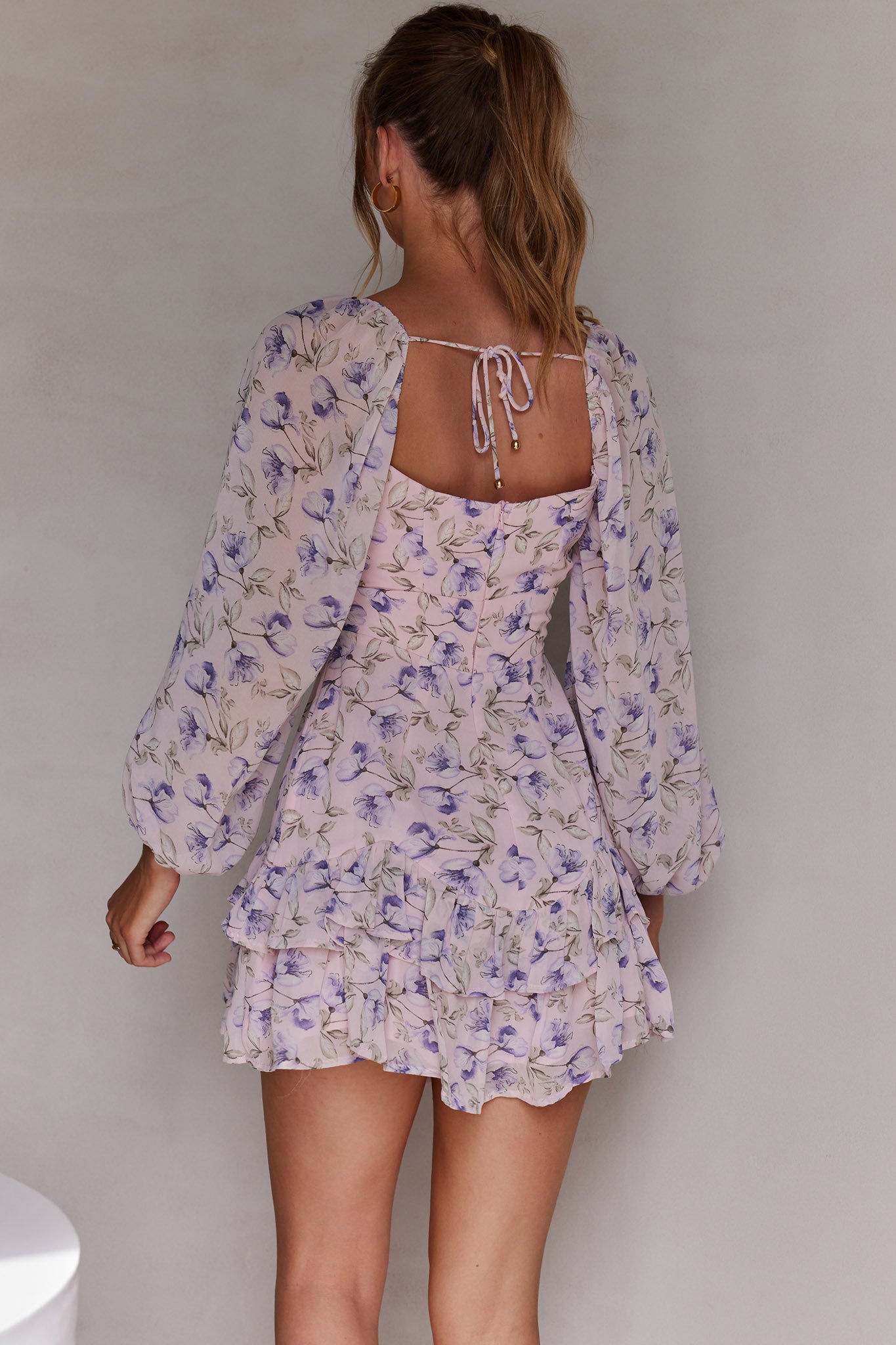 Dearly Beloved Balloon Sleeve Layered Frill Hem Dress Flower Print Blush
