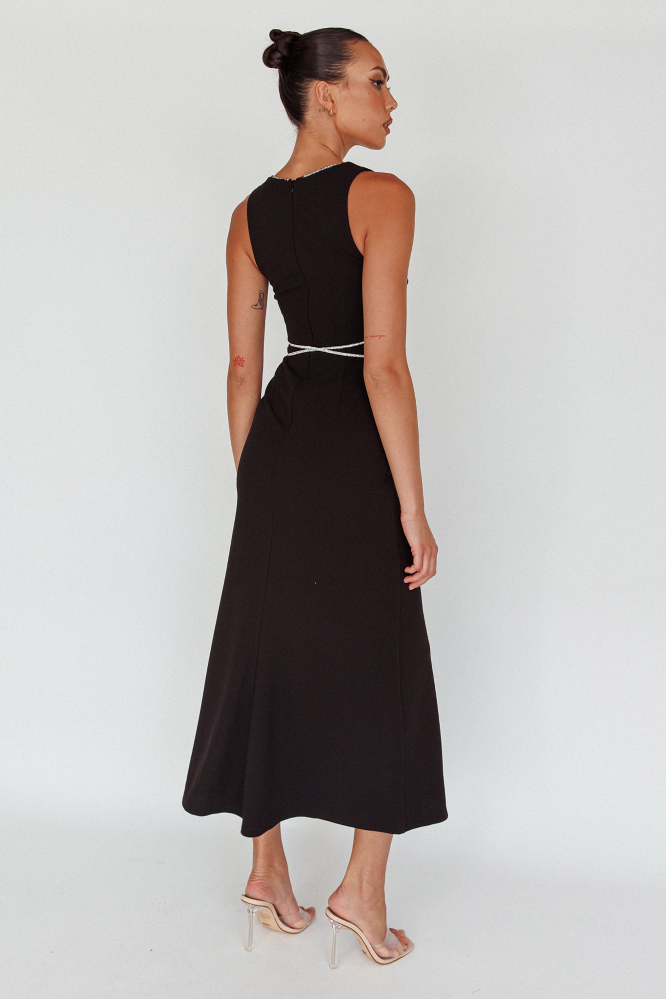 Light up the room in our gorgeous Del Sol maxi dress. Featuring a diamante rope trim that wraps and ties around the waist. Perfect for a wedding or special occasion! Team it with diamante mules to complete the look.