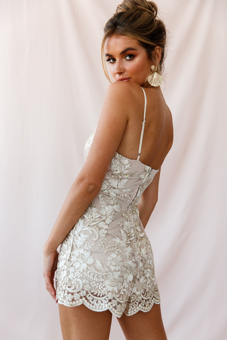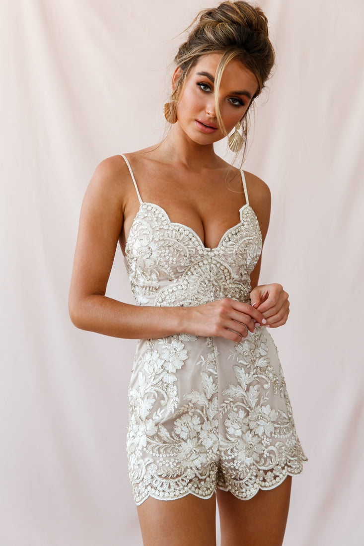 Hey there, Delilah! Look every bit the socialite in our stunning Delilah romper. Fully lined with a padded bust cup, it features a beautiful scalloped sweetheart neckline and scalloped hem, adjustable shoestring straps, and elasticated back with zipper closure. We are loving the gorgeous floral embroidery overlay! Pair it with statement earrings, winged eyeliner and a bright red lip for a look that will steal the show.