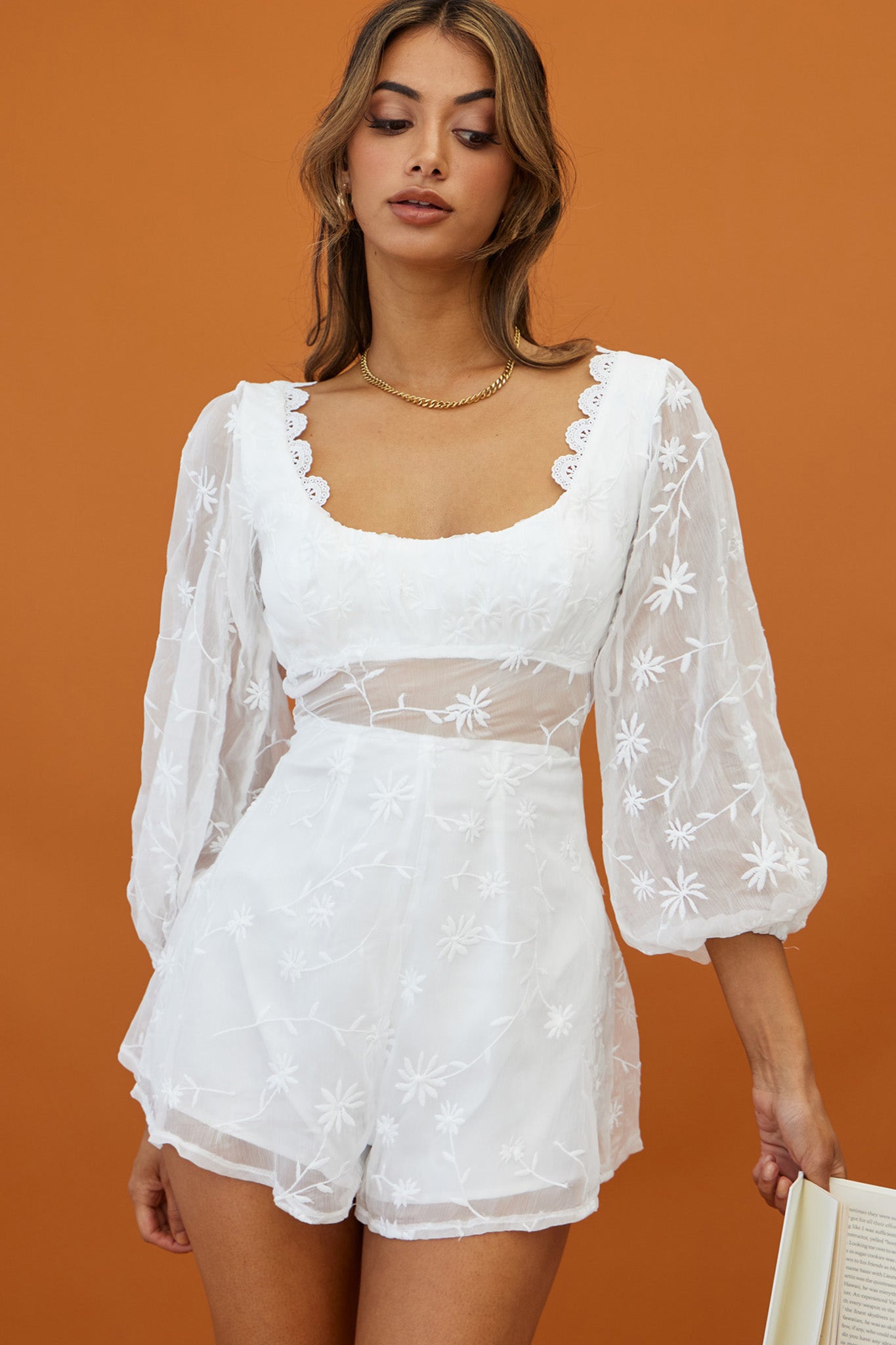 You won't be able to stop the stares as you strut by in our gorgeous Delphine romper. Summer rompers are our current obsession and we are loving the floral embroidery detail and breezy open back. Perfect for date night with your lover teamed with tan mules and a tote.