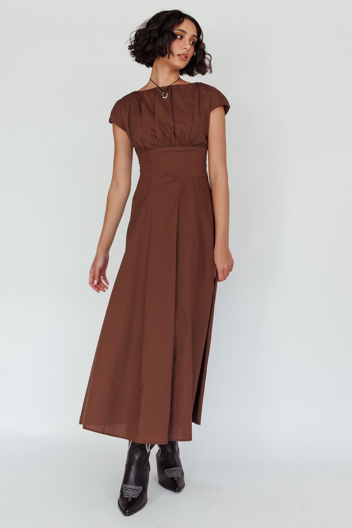 Derry Cap Sleeve A-line Maxi Dress Chocolate