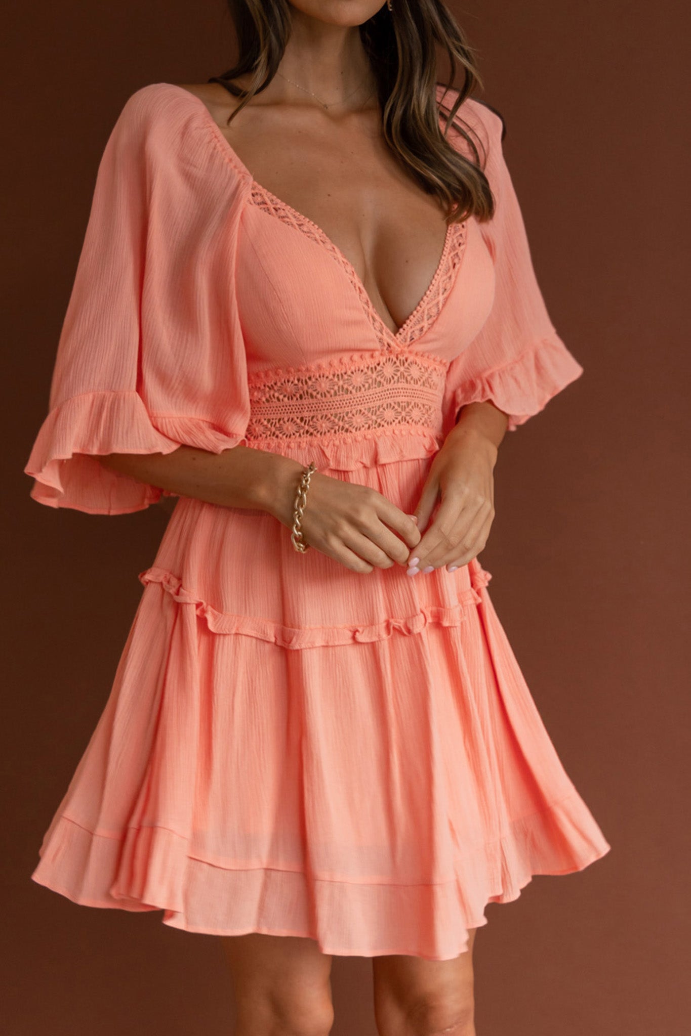 Desert Rose Bell Sleeve Mini Dress Blush