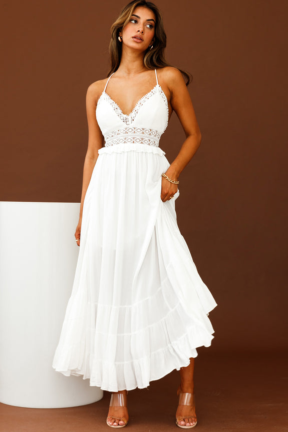 Desert Rose Crochet Tie-Up Back Maxi Dress White